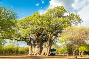Wir machen einen Abstechter zum Hobo Meteoriten, er gilt als der größte bekannte Meteorit auf der Erde. Unser Tagesziel ist aber ein Campingplatz bei den San – auch Buschmänner genannt. Zwar besitzt der Campingplatz wirklich gar nichts (auch keine Toilette), aber dafür gibt es ein echtes Highlight zu sehen. Wir dürfen den mächtigsten Baum bewundern, den wir beide je gesehen haben!