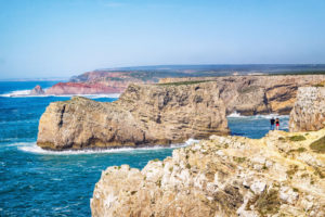 Das Cabo de São Vicente (Kap von São Vicente) ist das Ende. Das Ende von Europa. Dann kommt lange Zeit nur Wasser. Und dann Amerika. Früher ein Sehnsuchtsort von Abenteurern und Seefahrern, die wissen wollten ob es da draußen wirklich schiffeverschlingende Seeungeheuer gibt. Oder eine Kante, wo die Welt endet und die sie in ein schwarzes Nichts zieht. Heute ist es der meistbesuchte Ort der Algarve. Und auch wir lassen ihn uns nicht entgehen 😉