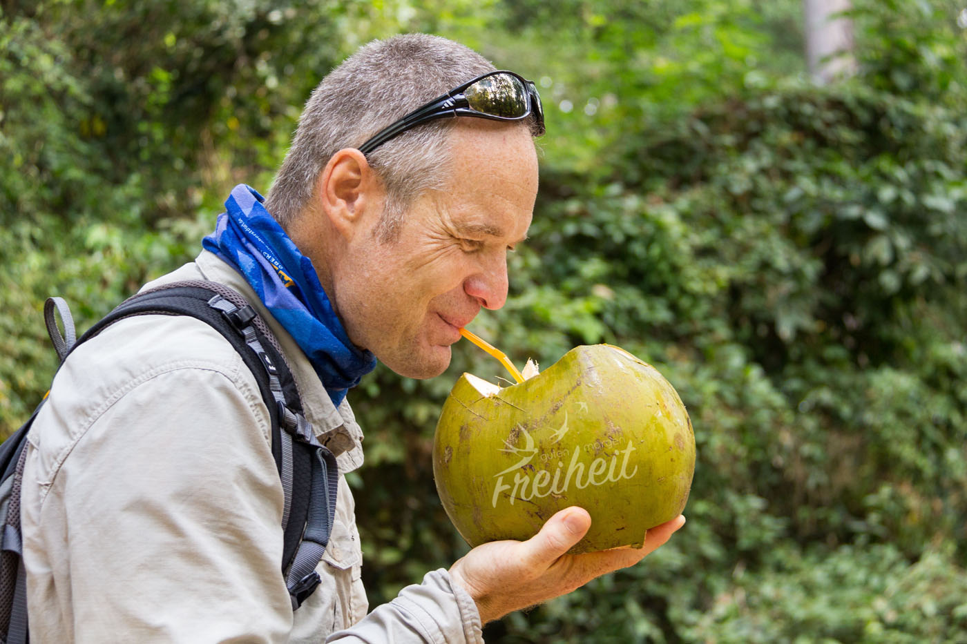 Ich kürze die Aufenthaltsdauer ab und kehre flott zurück. Wieder platt und schweißgebadet freue ich mich auf einen langen mit Fahrtwind gesegneten Rückweg ins Hotel.