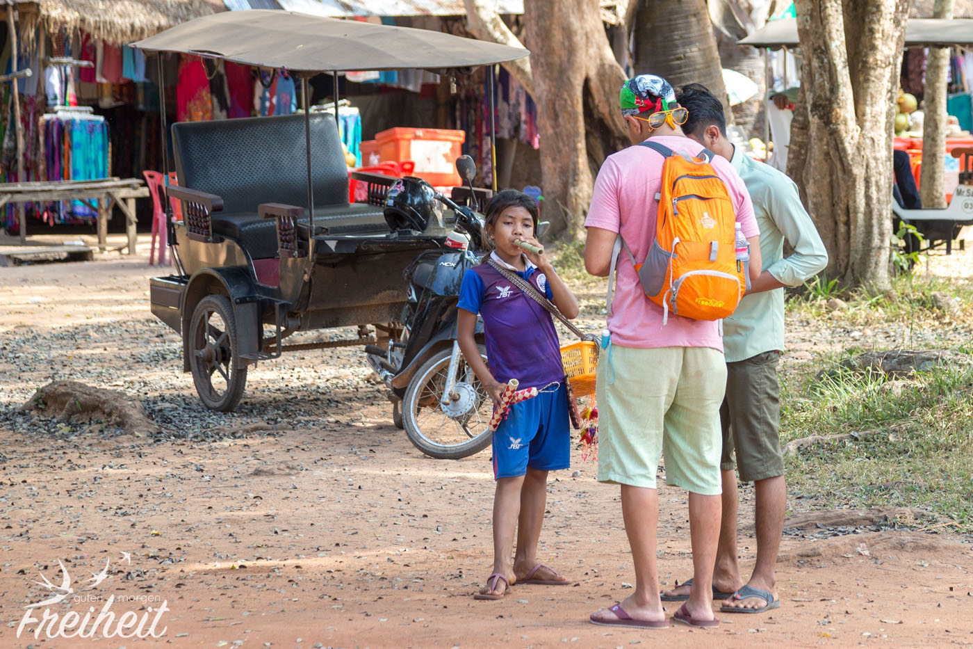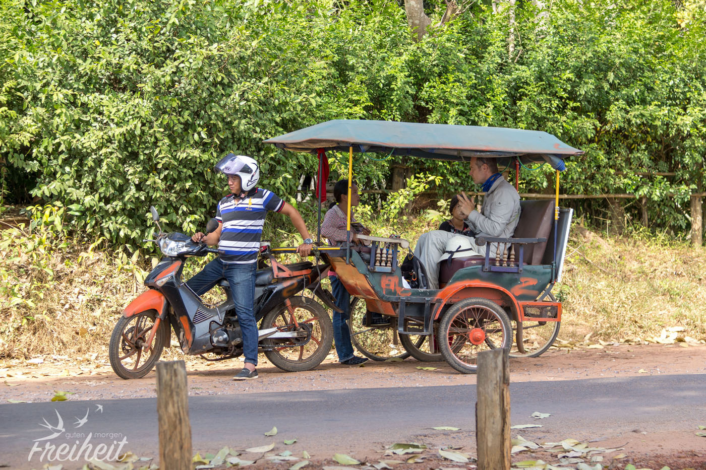 So geht es also heute wieder zum Angkor Park. Unser neuer Tuk Tuk Fahrer, Seilaan, ist super nett und fährt sehr rücksichtsvoll so weit es geht um alle großen Löcher drumrum. Carstens Rücken freut sich. Auch die Stoßdämpfer sind nicht so ausgeleiert wie beim letzten Tuk Tuk. Und so wird uns Seilaan auch am morgigen, dritten Tag begleiten.
