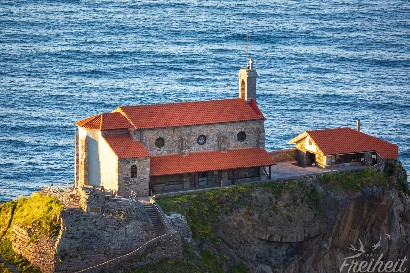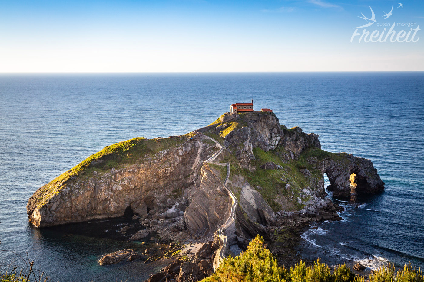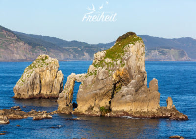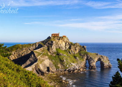 Gaztelugatxe ist eine winzige Insel im Golf von Biskaya und liegt gute 50 Autominuten nordöstlich von Bilbao entfernt. Eine spektakuläre gut 200m lange Steinbrücke verbindet die Insel mit dem Festland. Oben auf der Spitze des knapp 50m hohen Hügels thront das ehemalige Kloster San Juan de Gaztelugatxe. Eine in den Fels gehauene Treppe mit 237 Stufen schlängelt sich bis nach oben. Die gerade einmal 270m lange und 80m breite Felseninsel wird von mehreren unterirdischen Gängen durchzogen und besitzt zahlreiche Höhlen. Und genau hier auf Gaztelugatxe wurden Teile der 7. und 8. Staffel von Game of Thrones gedreht. Gelassen wurde die romantisch-rustikale Brücke. Ersetzt wurde das Kloster – und zwar durch die mächtige Burg Drachenstein. Wahnsinn was digital so möglich ist!