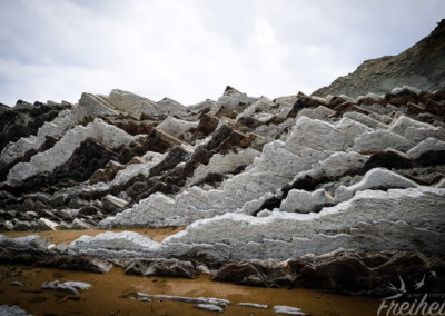 Der Playa de Itzurun liegt gute 25 Kilometer westlich von der touristisch sehr beliebten Stadt San Sebastián entfernt und gehört zu dem Ort Zumaia. Der Strand selbst liegt etwas versteckt, ist aber ehrlich gesagt nicht besonders ungewöhnlich. Ungewöhnlich sind aber die Flysch Formationen an der Küste. Flysch entsteht durch Sedimentablagerungen unterschiedlicher Materialien über die Jahre von Millionen. Enstanden sind dabei Felsformationen, die lamellenartig über- oder nebeneinander liegen. Je nach tektonischer Hebung. Manche Felsen sehen aus wie die Zacken auf dem Rücken eines Drachen 😉 Und schon haben wir die Überleitung zu Game of Thrones! Denn auch dieser Drehort gehört in der Serie zur Insel Drachenstein. Passt ausgezeichnet.