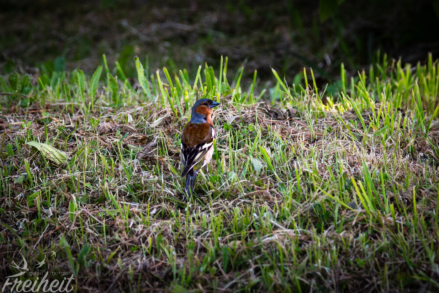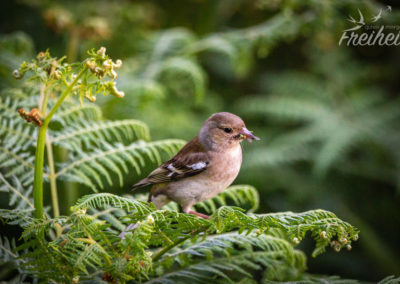 Wir machen uns also schon nach kurzer Zeit wieder auf den Rückweg. Auf dem Weg nach oben werden wir dafür aber noch mal sehr positiv überrascht! Unser Glück mit dem Vogel-Shooting am gestrigen Abend findet jetzt tatsächlich eine Fortsetzung. Überall zwitschert es in den Ästen oder auf den Grashalmen und unsere bunten Freunde die Finken und Meisen hüpfen vergnügt von Ast zu Ast. Nicht nur dass es total schön ist ihnen dabei zuzusehen. Nein, wir haben es sogar so nah an sie herangeschafft, dass wieder ein paar tolle Aufnahmen entstanden sind! In nah auf den Fotos sehen sie sogar noch hübscher aus als aus ein paar Metern Abstand.