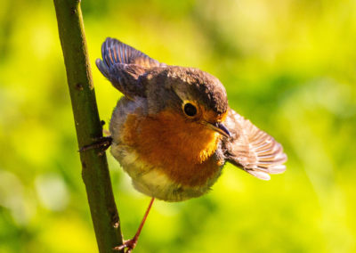 Auf unserem kleinen Spaziergang zurück zum Parkplatz sehen wir Rotkehlchen, Blaumeisen und Buchfinken auf den Wiesen und Sträuchern nach Futter suchen. Während die einen ein paar kleine Grashüpfer im Schnabel haben, picken die anderen im Gras nach Körnern und Saaten. Sie sind dabei so eifrig und geschäftig, dass wir sogar ein paar Fotos von ihnen machen können. Dank der Unterstützung unseres fetten 600mm Objektivs gelingen sie sogar ganz gut 🙂 Nur die Dämmerung ist unser Gegner und bald schon ist es zu dunkel für weitere Fotos. Aber vielleicht haben wir morgen noch mal Glück!