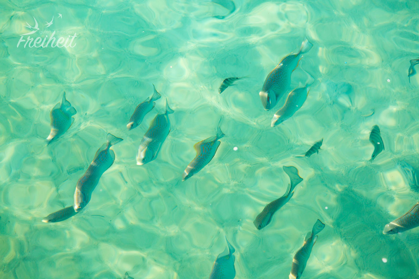 Wir erfreuen uns an der Aussicht, dem feinen Sand und dem Hammer warmen und türkisfarbenen klaren Wasser. Hundert Meter kann man hier reingehen und immer noch stehen. Dazu relativ wenig Plastik am Strand, es wird täglich sauber gemacht, zumindest oberflächlich. Wir sehen kleine und größere Fische und Krabben mit und ohne Haus. Die Kokospalmen sehen toll aus. Man darf nur nicht vergessen, dass es viele böse Unfälle durch herabfallende Kokosnüsse gibt. Also Obacht am Strand!