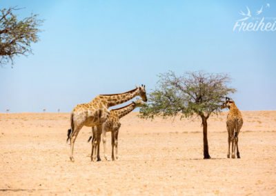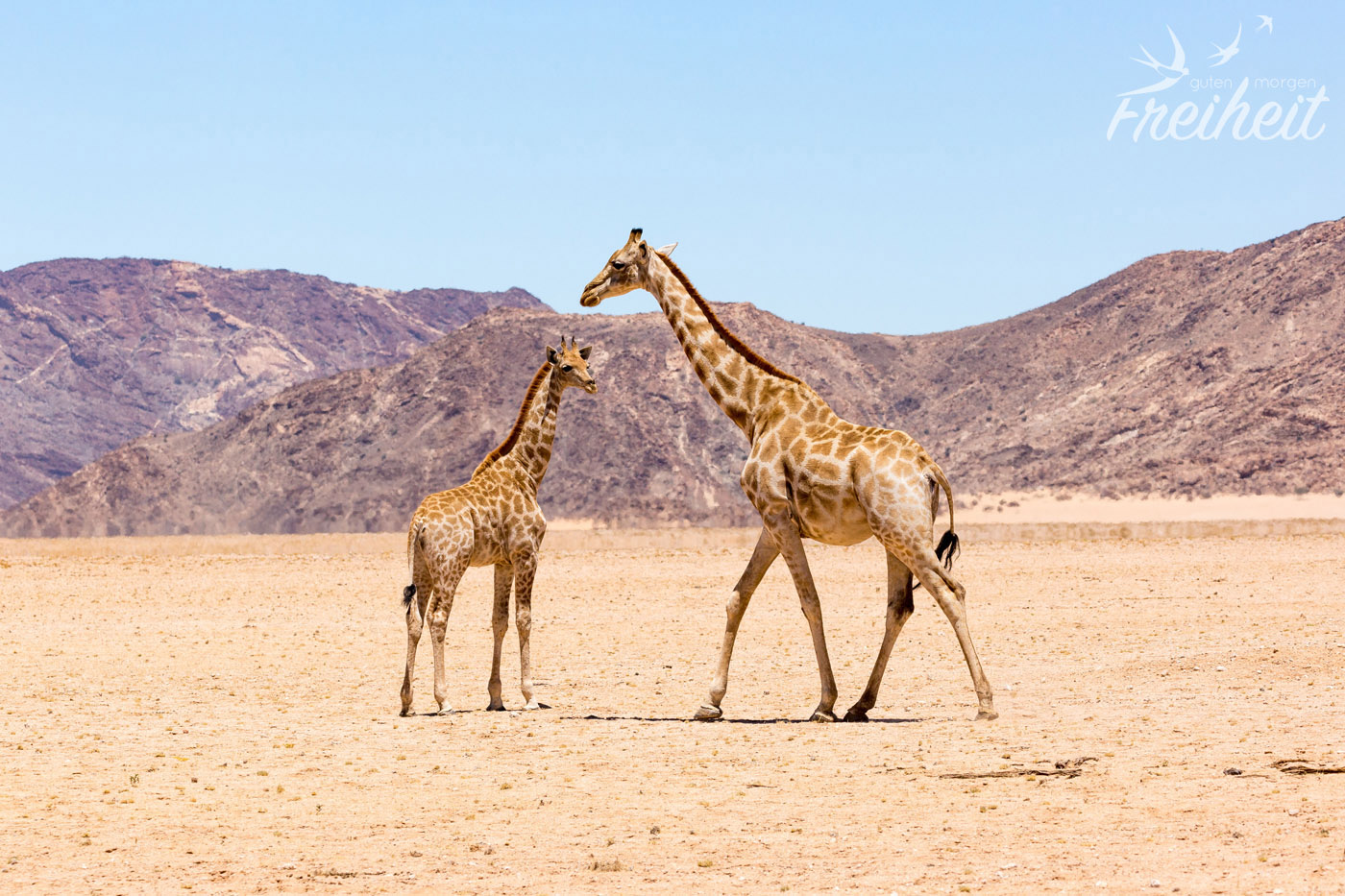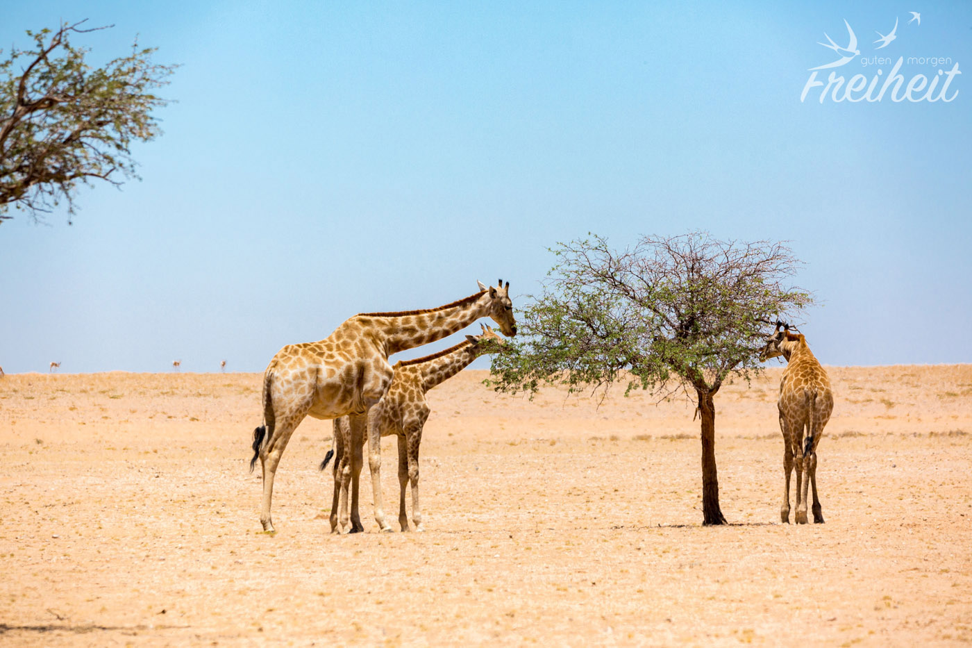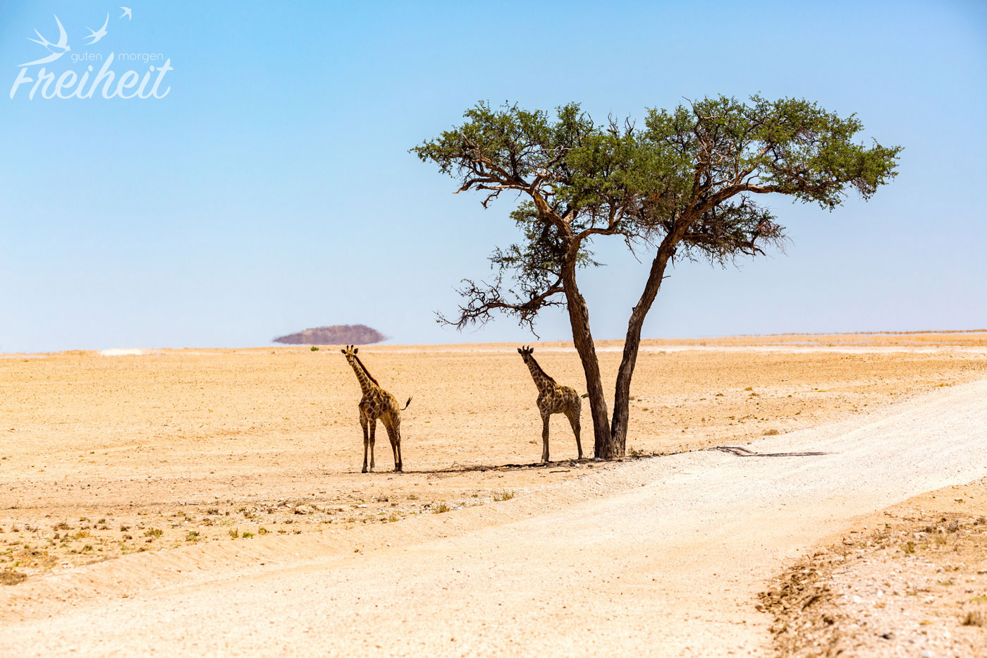 Neben Springböcken haben wir auch Giraffen, Strauße und Zebras gesehen. Wir sind ganz überwältigt, dass wir hier überhaupt auf so viele Tiere treffen. Die Wüstenlandschaft sieht einfach zu lebensfreindlich aus. Und trotzdem schaffen es diese Tiere in der unwirtlichen Gegen zu überleben. Ihr Vorteil hier: es gibt keine großen Fressfeinde. Raubkatzen können nicht in der Wüste überleben. Mit der Trockenheit kommen nur die angepassten, hauptsächlich pflanzenfressenden Tiere zurecht. Sie sind in der Lage ihren Flüssigkeitshaushalt über Blätter, Knollen u.ä. aufzufüllen.