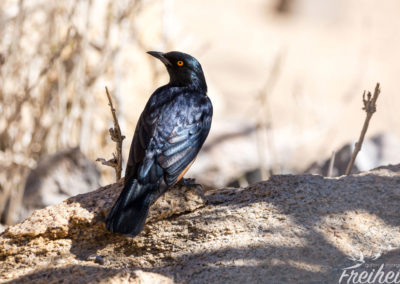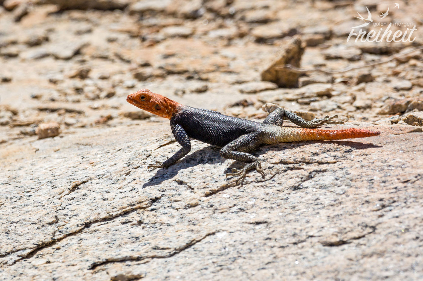 Schatten gibt es – wie so oft in der Wüste – keinen. Also stellen wir schnell unser Dachzelt auf und hocken uns unter den nun entstandenen Schatten 🙂 Püntklich zum Essen äugen schon die ersten Vögel von den Ästen und hoffen auf ein paar Essensreste 🙂 Abgesehen von unseren fliegenden Freunden sind wir gefühlt die einzigen Lebewesen hier. Nagut, eine Agame sehen wir noch über den Fels huschen. Aber ansonsten sehen wir niemanden. Wir haben hier wirklich den einsamsten Stellplatz auf unserer gesamten Namibia Reise gefunden. Selbst im größeren Umkreis gibt es keine Siedlung. Ein großartiges Gefühl.