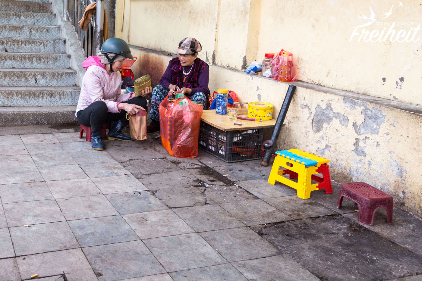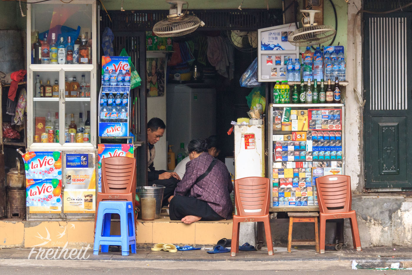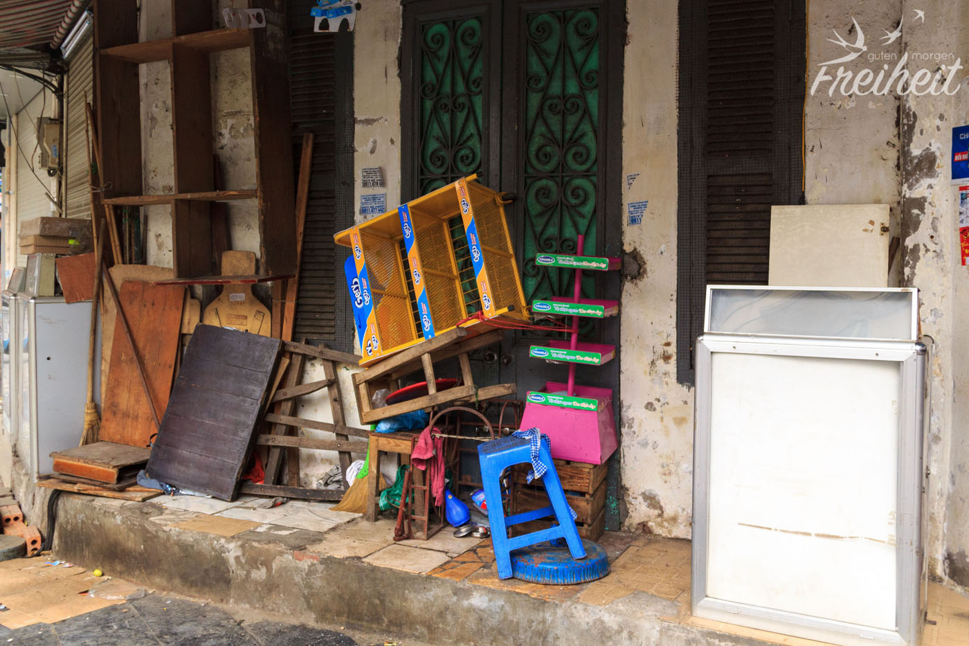 Vereinzelt öffnen Straßenhändler ihre kleinen Stände und ein paar Garküchen stellen wieder ihre kleinen Kinderstühle auf und warten auf Kundschaft. Mit Ausnahme von vereinzelten Minimärkten ist kein Geschäft geöffnet. Alle Rollläden sind unten und wenn sie doch zur Hälfte geöffnet sind, dann nur, weil die Menschen auch in ihrem Laden wohnen und sonst kein Fenster haben.