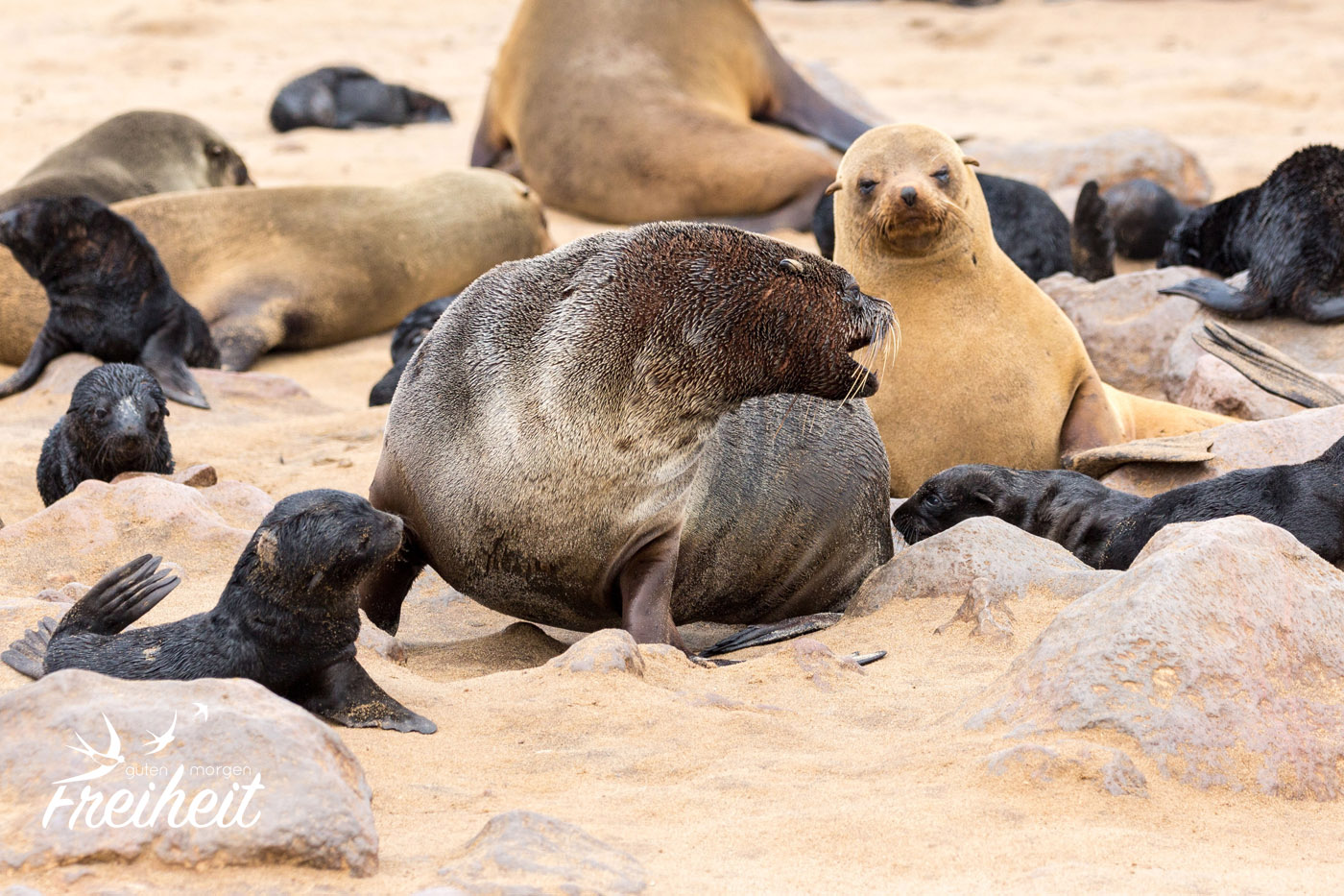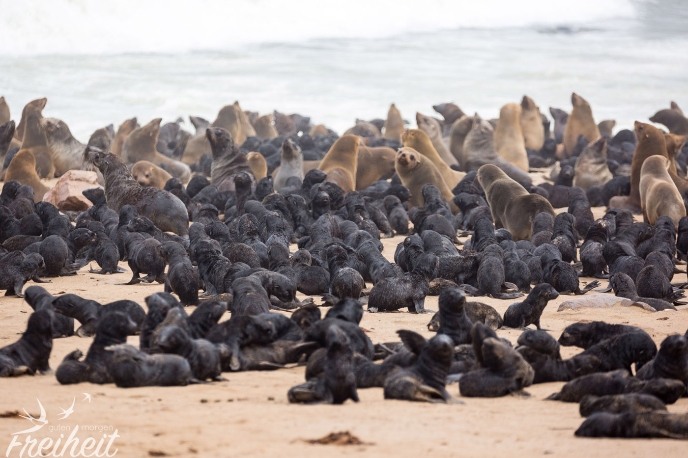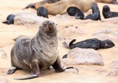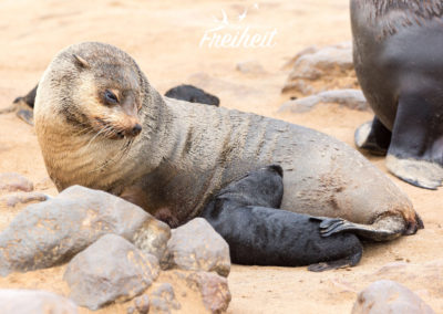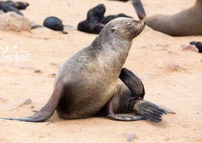 Robben. Wir werden sie sehen. Und zwar viele. Richtig viele. Genauer gesagt, werden wir die berühmte Zwergpelzrobben Kolonie am Cape Cross besuchen – und die besteht aus bis zu 100.000 Individuen! Und da gerade Nachwuchs da ist, ist besonders viel los.