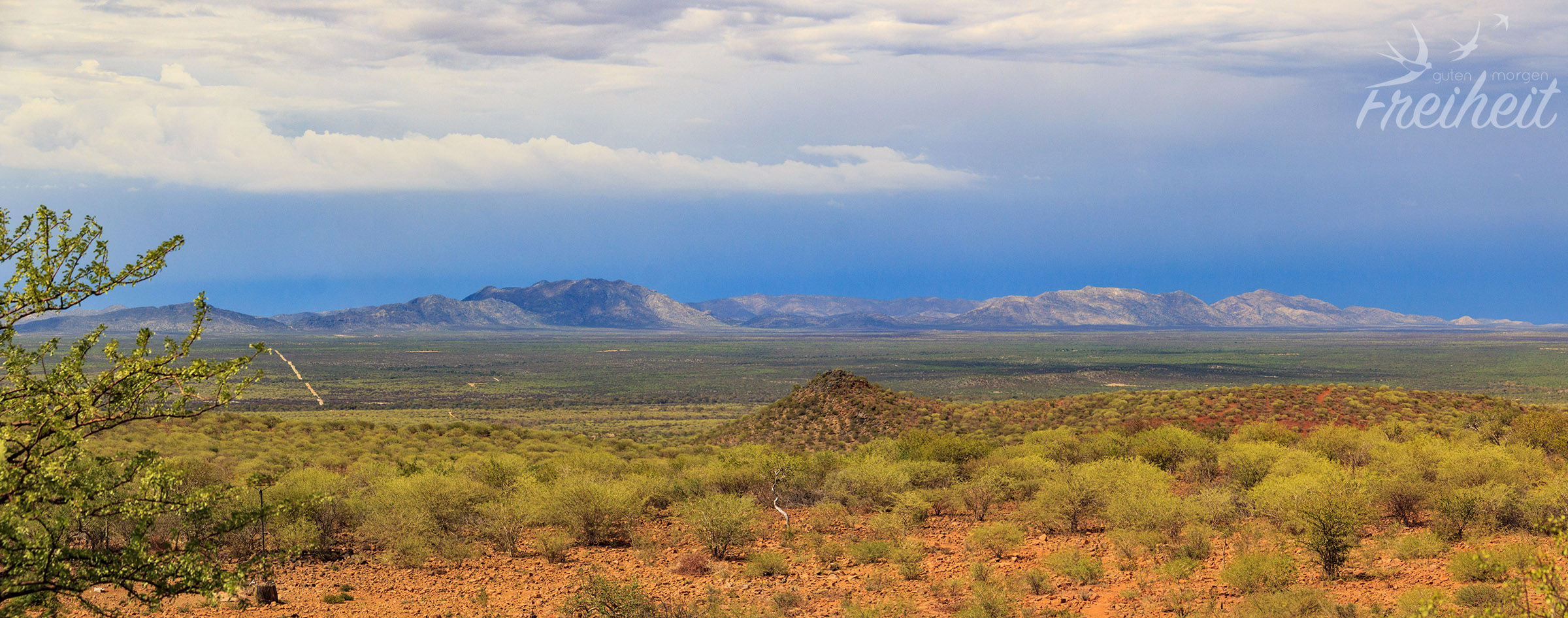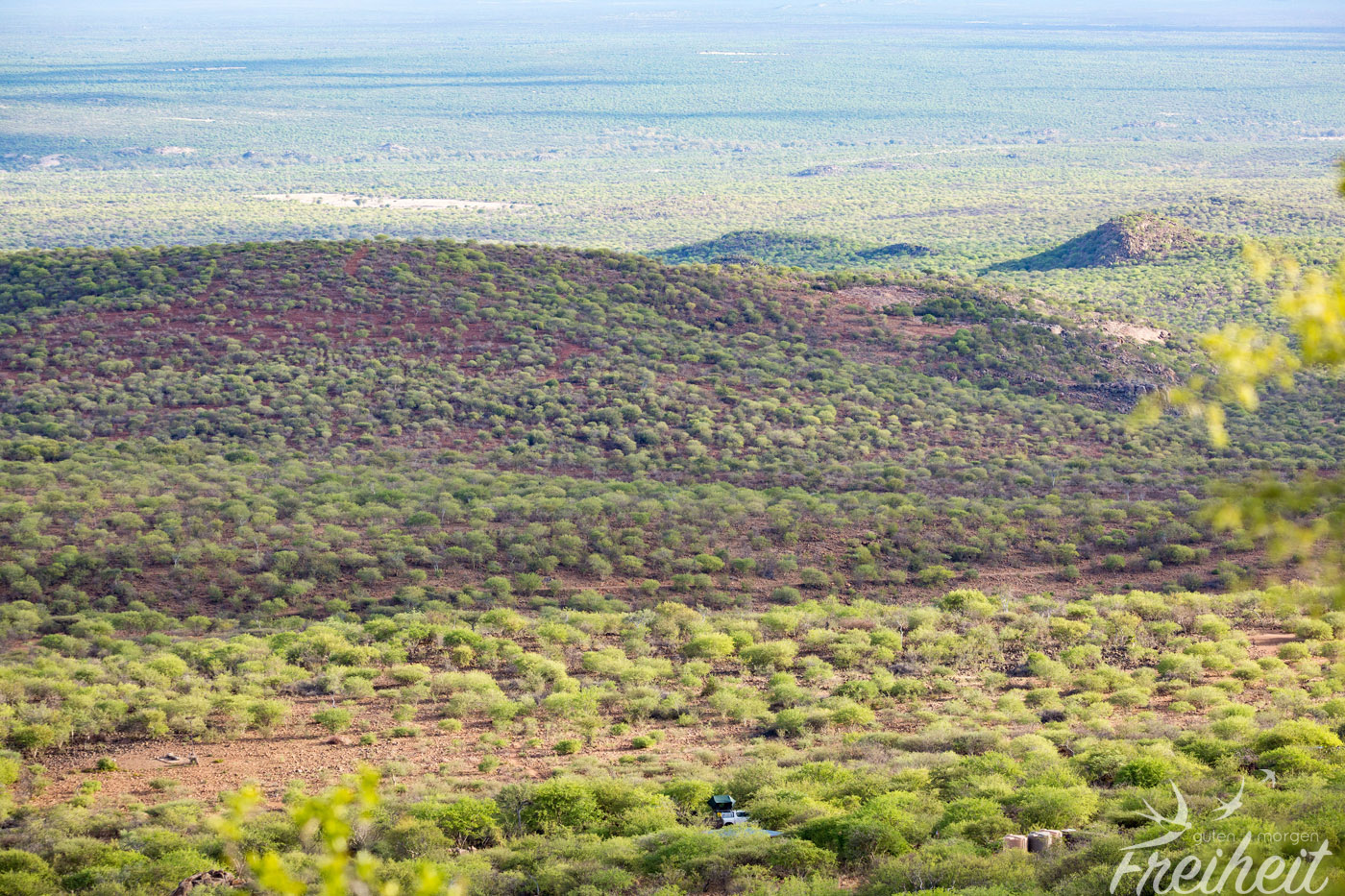 Neuer Tag, neues Glück 🙂 Carstens Alternative heißt Erongo Plateau Camp im Erongo Gebirge und soll auch gar nicht mal so weit entfernt sein. Vorher müssen wir aber noch einen Umweg zur Tankstelle und zum Superspar machen um unsere Vorräte aufzustocken, denn unser heutiger Campingplatz ist ziemlich abgelegen und bietet außer Wasser und Sanitäranlage nichts weiter an. Kein Strom, kein WLAN, dafür aber weite Blicke über die Landschaft. Schon auf dem Weg dahin gefällt uns die Landschaft richtig gut. Während die Berge zunächst schroff und felsig erscheinen, verändern sie sich anschließend zu grün bewachsenen sanften Hügeln. Der Campingplatz besteht nur aus vier Stellplätzen. Rundherum nichts weiter außer Bäume und Berge und Stille.