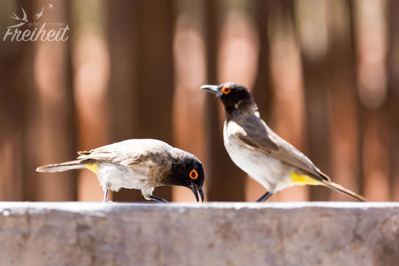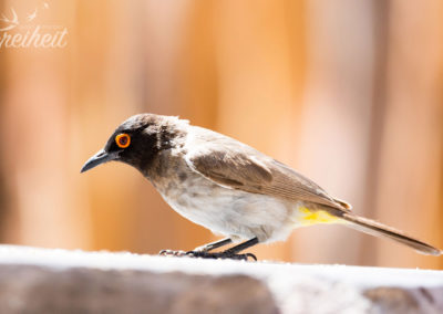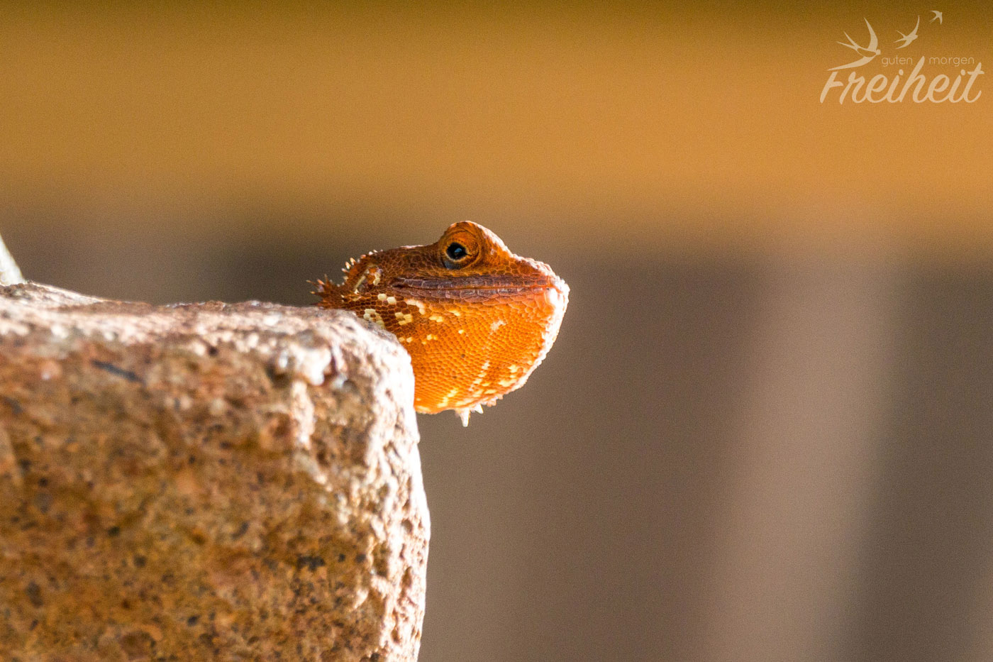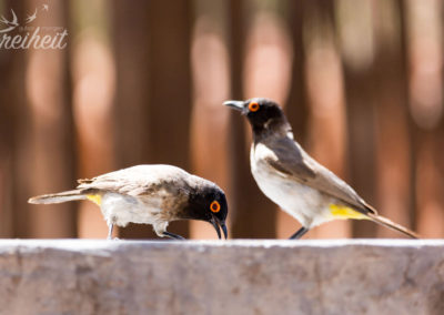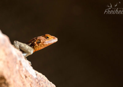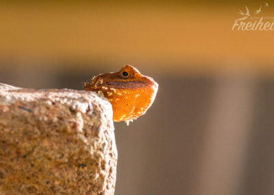 Wir nutzen die Mittagshitze um unsere Wäsche per Hand durchzuwaschen und aufzuhängen. Schon nach ein paar Minuten hat der Naturtrockner seine Arbeit beendet 🙂 Wir beobachten die neugierigen Vögel, die sich nach unserer Brotzeit auf die Suche nach ein paar Krümeln begeben und uns – und unserer Kamera 🙂 – immer näher kommen. Da frohlockt doch das Fotografenherz 🙂 Und als wir uns die Außenwand der Sanitäranlage genauer anschauen, finden wir noch eine hübsche größere Echse 🙂