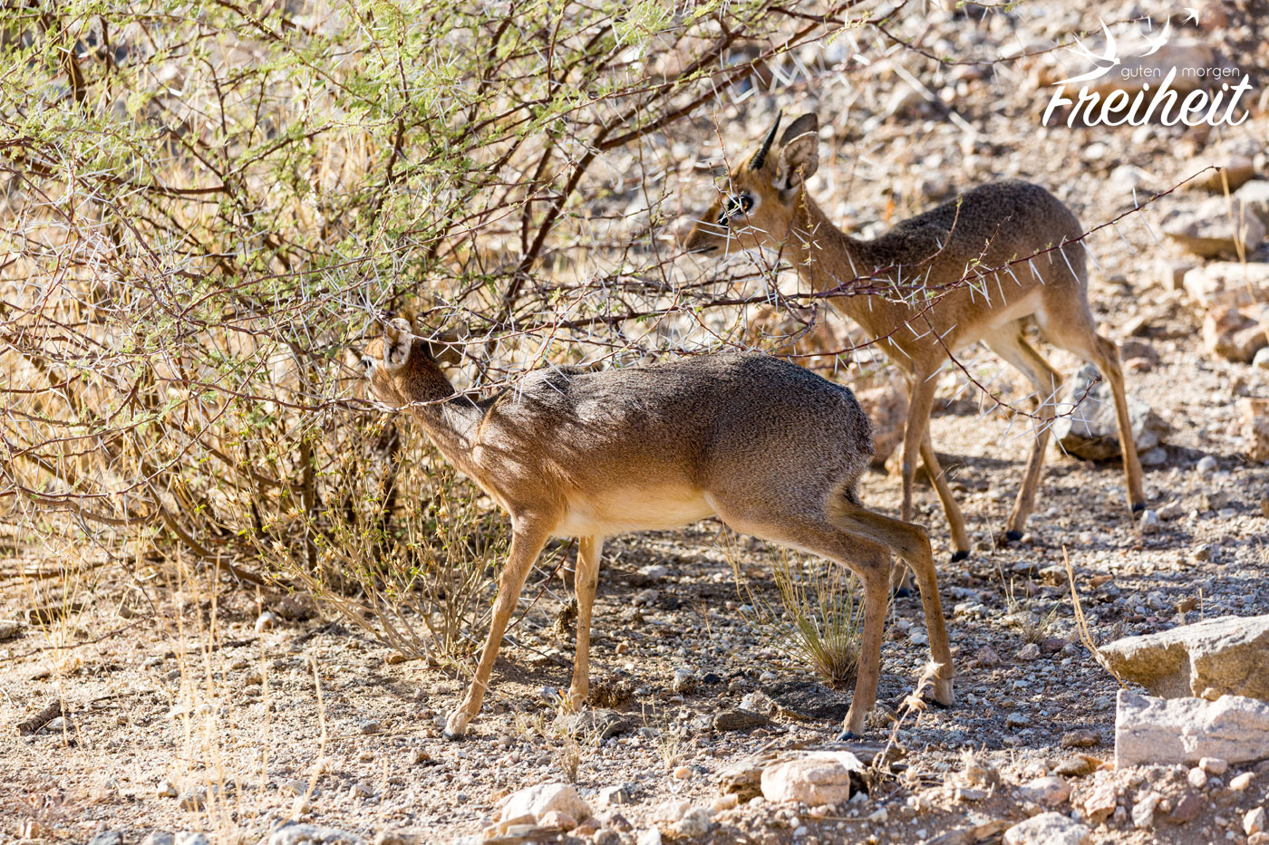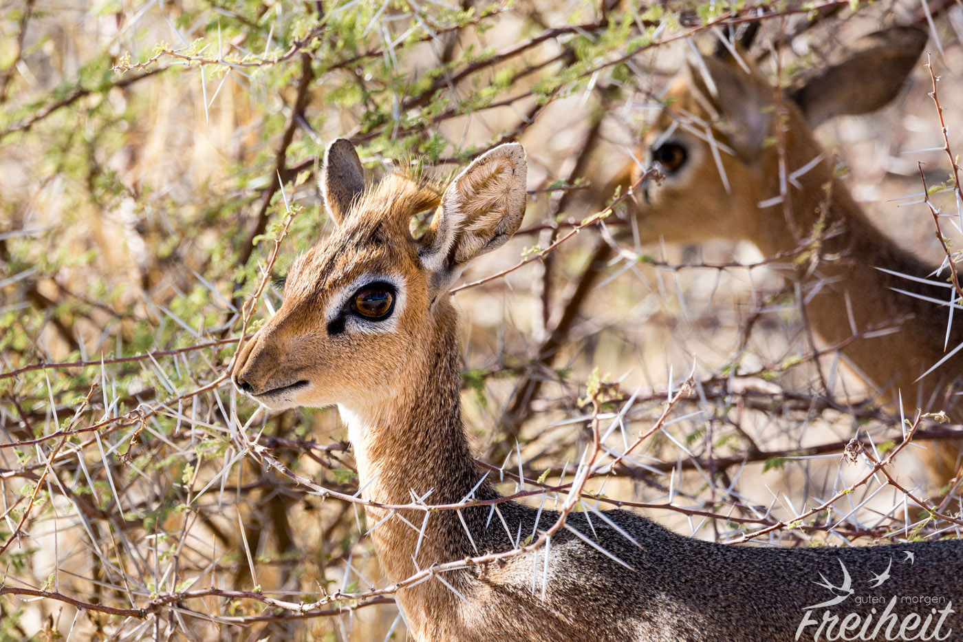 Am nächsten Morgen verlassen wir den Campingplatz und machen uns auf den Weg Richtung Küste. Doch bevor wir da ankommen, treffen wir am Straßenrand ein Dik-Dik Pärchen, das sich ungestört beobachten lässt. Hier kommt ein echter Zuckerüberschuss: