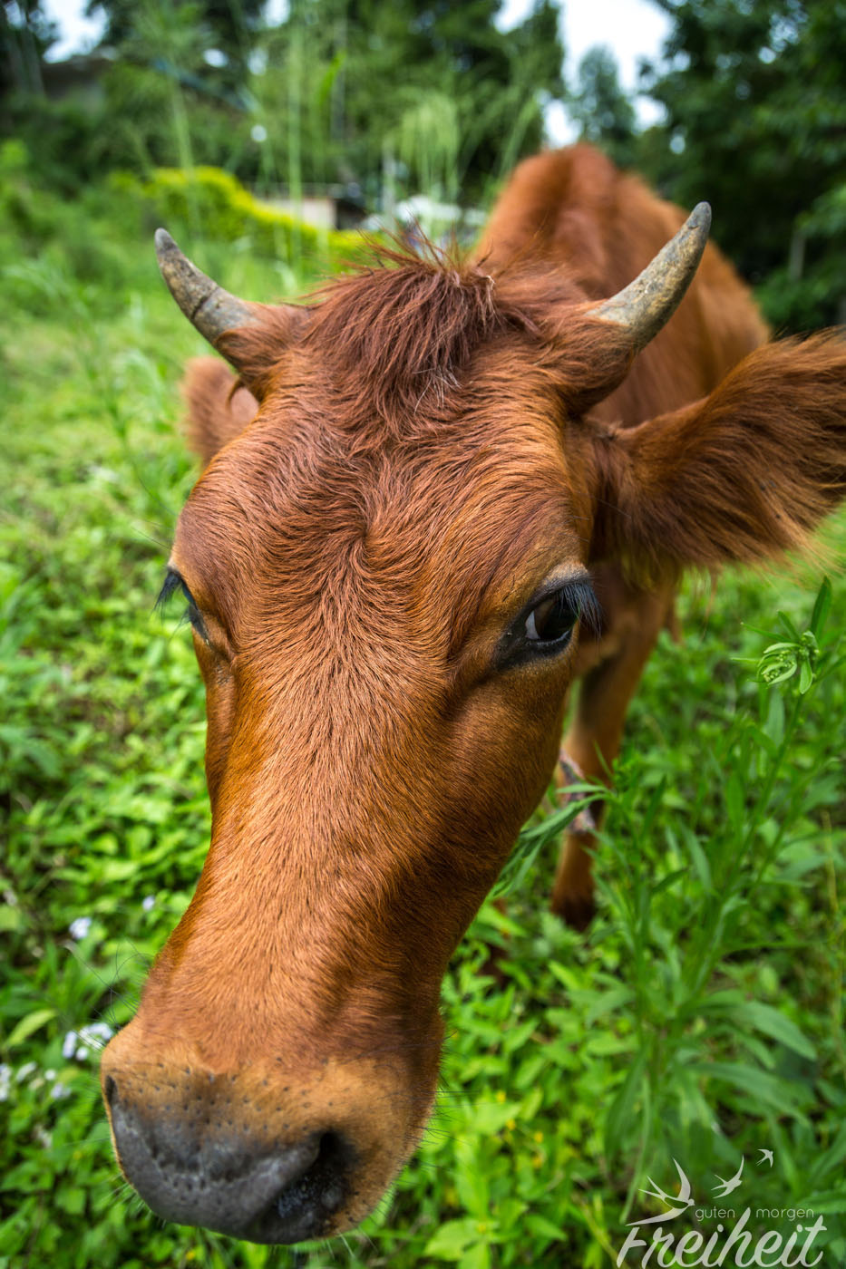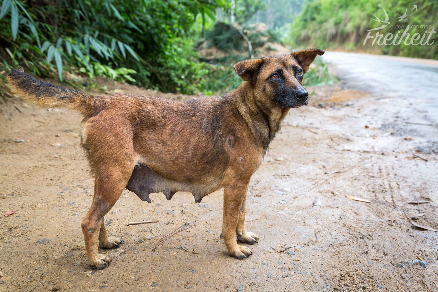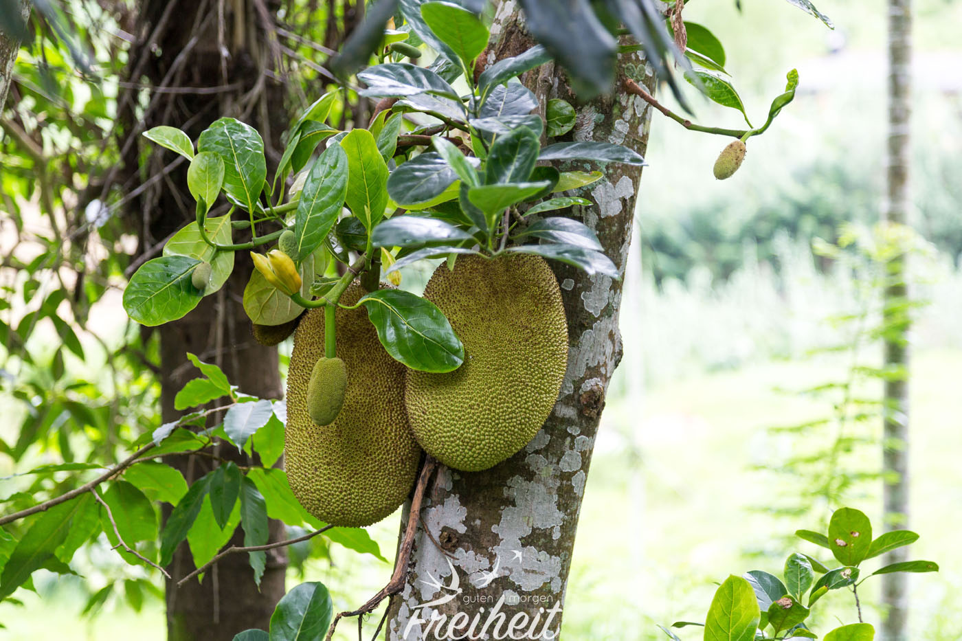 Unser Weg zurück zur Unterkunft führt uns wieder an Teeplantagen vorbei. Den Engländern aus Kolonialzeiten ist es zu verdanken, dass der Schwarze Tee aus Sri Lanka ein Exortschlager wurde. Das Hochland hat ein angenehmes Klima und wirkt nach den vielen heißen Tagen sehr erfrischend. Trotzdem kann man hier mit kurzer Hose rumlaufen ohne zu Frieren. Kalt kann es aber trotzdem werden. Unser Vermieter erinnert sich an ein Jahr, wo es in höherer Lage sogar mal schneite. Aber der Schnee blieb natürlich nicht liegen. Am Wegesrand grast eine neugierige Kuh (leider angeleint) gleich daneben liegt eine Hündin mit ihrem kleinen Welpen. Die allgegenwärtigen Streifenhörnchen wuseln natürlich auch überall herum. Nebendran stehen Jackfruchtbäume voller Früchte und bunte Blumen umschwärmt von Schmetterlingen. So bummeln wir mehr abgelenkt als zielstrebig zu unserer Unterkunft 🙂