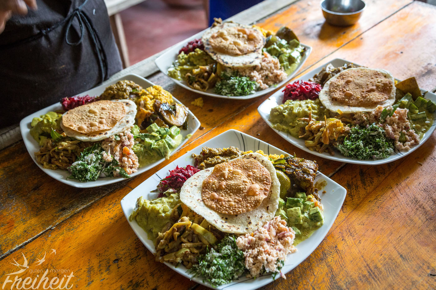 Den Rest des späten Nachmittags sortiert Nadine Fotos und ich pflege meinen Brummschädel. Am Abend erwartet uns nur noch eine kleine Portion Daal mit Reis, denn nach unserer Kochkursvöllerei passt einfach nichts mehr rein 😉