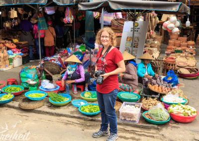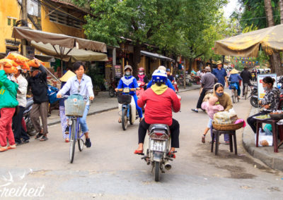 Einst hatte Hoi An den größten Hafen Südostasiens und war Handelsmetropole an der Seidenstraße. Im 18. Jahrhundert versandete der Hafen zunehmend und verlor seine wirtschaftliche Bedeutung. Das 30 Kilometer entfernte Da Nang übernahm Hoi Ans Handelsrolle. Zum Glück für Hoi An! Denn ihren „Niedergang“ hat die Stadt den Erhalt des historischen Stadtbildes zu verdanken. Selbst im Vietnam Krieg schenkten ihr die Amerika keine Bedeutung und so gilt die Altstadt als einzige in Vietnam, die unversehrt den Krieg überstanden hat. Heute duchzieht ein bunter Mix aus schönen Handelshäusern, Markthallen und Wohnhäusern den weitestgehend auto- und vorallem rollerfreien Altstadtkern. Die Einflüsse verschiedener Herkunftsländer der zugezogenen Händler sorgen für ein sehr vielseitiges Stadtbild. Hier findet man japanische Einflüsse, indische, französische, holländische, portugiesische und natürlich chinesische 😉