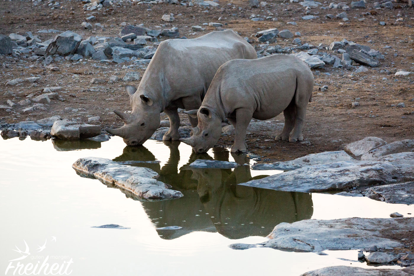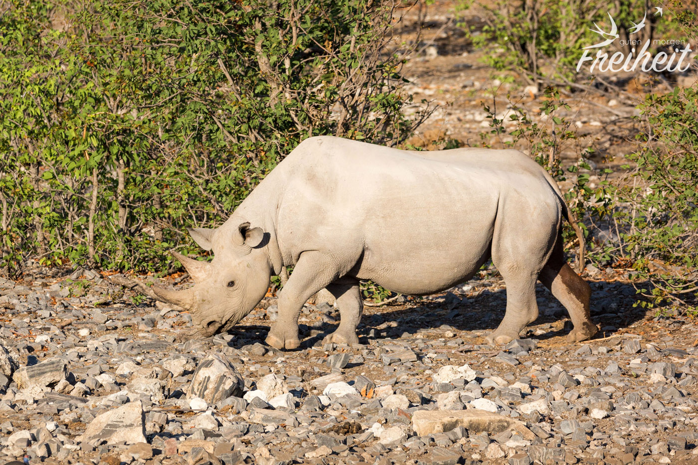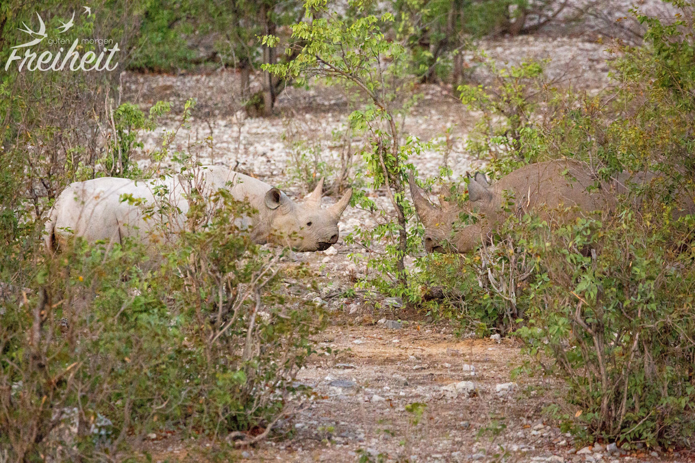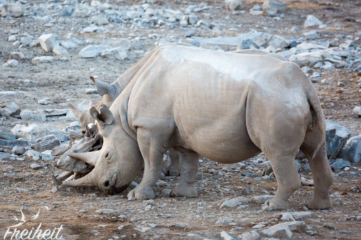 Die Dickhäuter waren eigentlich mal ausgestorben im Etosha Gebiet. Ab 1995 hat man versucht sie wieder einzuführen. Mit Erfolg! Mittlerweile kann man sie wieder antreffen und ihre Population hat sich erholt. Trotzdem sind Nashörner, die ein Gewicht zwischen 500 – 3000kg erreichen können, weltweit vorm Aussterben bedroht. Und das alles für ihr Horn, das besonders in China und Vietnam oft wertvoller als Gold gehandelt wird. Man sagt dem pulverisierten Horn wunderheilende (und auch potenzfördernde) Kräfte nach. Das alles ist nichts weiter als purer Wahnsinn, denn das Horn besteht aus den selben Substanzen wie Nägel und Haare und kann wissenschaftlich untersucht nichts gegen Krebs oder andere Krankheiten bewirken. Aber der Glaube versetzt Berge und in dem Fall löscht es eine weitere Spezies auf der Erde aus. Mit den Untersuchungen der Wissenschaft braucht man diesen Menschen aber nicht zu kommen. Es ist eben Tradition. Und nichts ist härter und langlebiger als Tradition.
