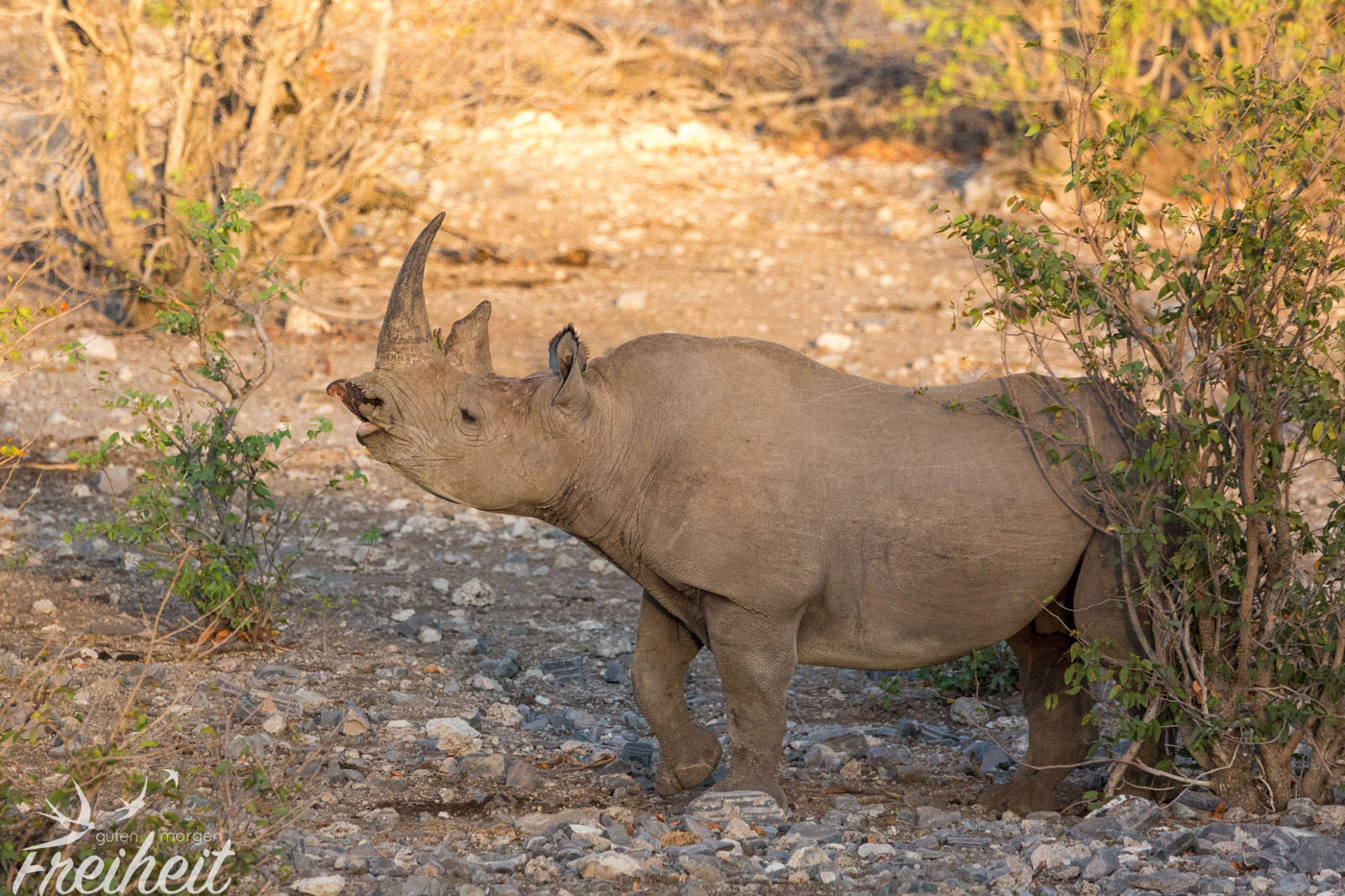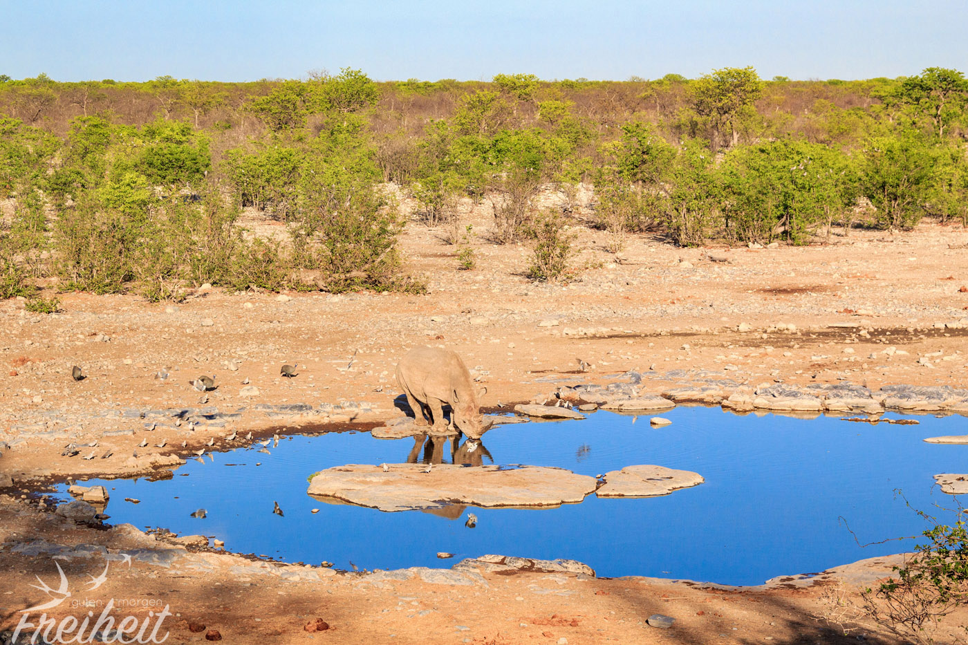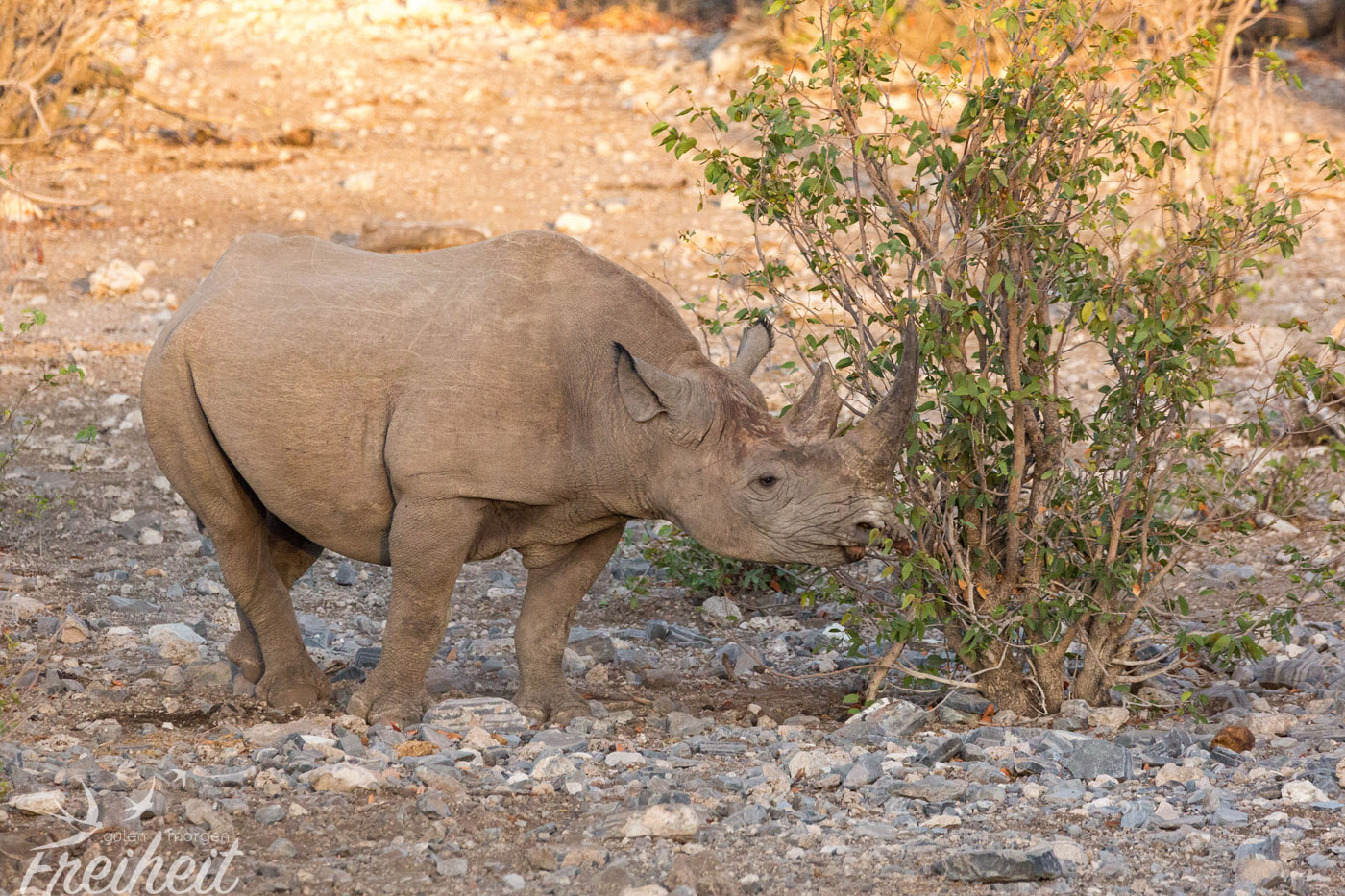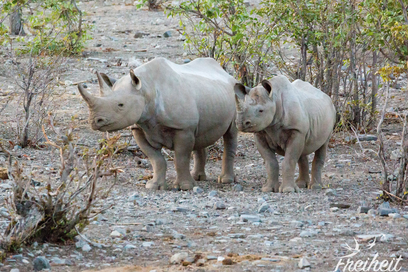 Die Dickhäuter waren eigentlich mal ausgestorben im Etosha Gebiet. Ab 1995 hat man versucht sie wieder einzuführen. Mit Erfolg! Mittlerweile kann man sie wieder antreffen und ihre Population hat sich erholt. Trotzdem sind Nashörner, die ein Gewicht zwischen 500 – 3000kg erreichen können, weltweit vorm Aussterben bedroht. Und das alles für ihr Horn, das besonders in China und Vietnam oft wertvoller als Gold gehandelt wird. Man sagt dem pulverisierten Horn wunderheilende (und auch potenzfördernde) Kräfte nach. Das alles ist nichts weiter als purer Wahnsinn, denn das Horn besteht aus den selben Substanzen wie Nägel und Haare und kann wissenschaftlich untersucht nichts gegen Krebs oder andere Krankheiten bewirken. Aber der Glaube versetzt Berge und in dem Fall löscht es eine weitere Spezies auf der Erde aus. Mit den Untersuchungen der Wissenschaft braucht man diesen Menschen aber nicht zu kommen. Es ist eben Tradition. Und nichts ist härter und langlebiger als Tradition.