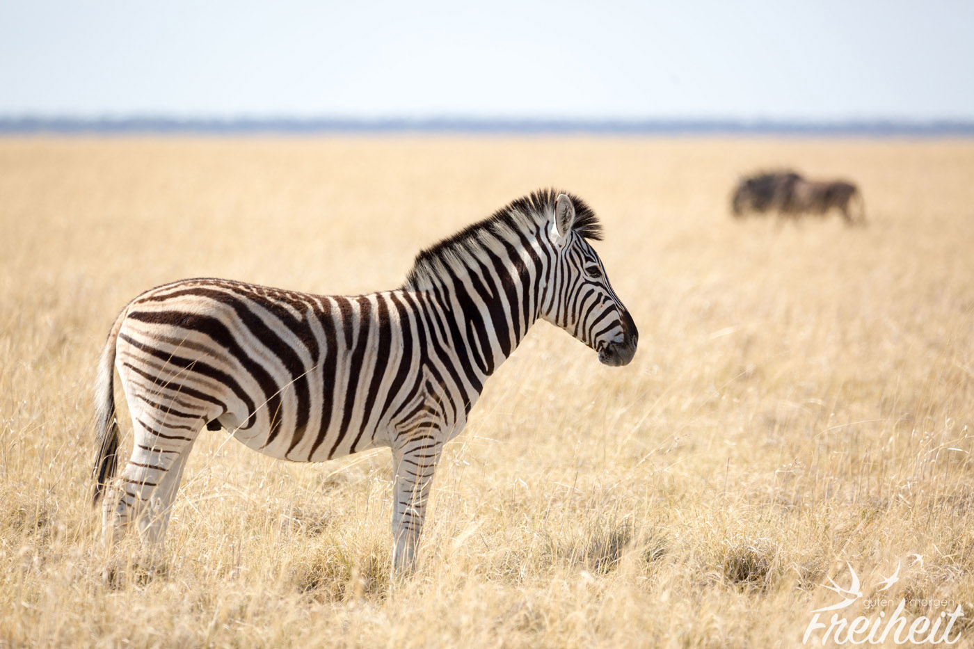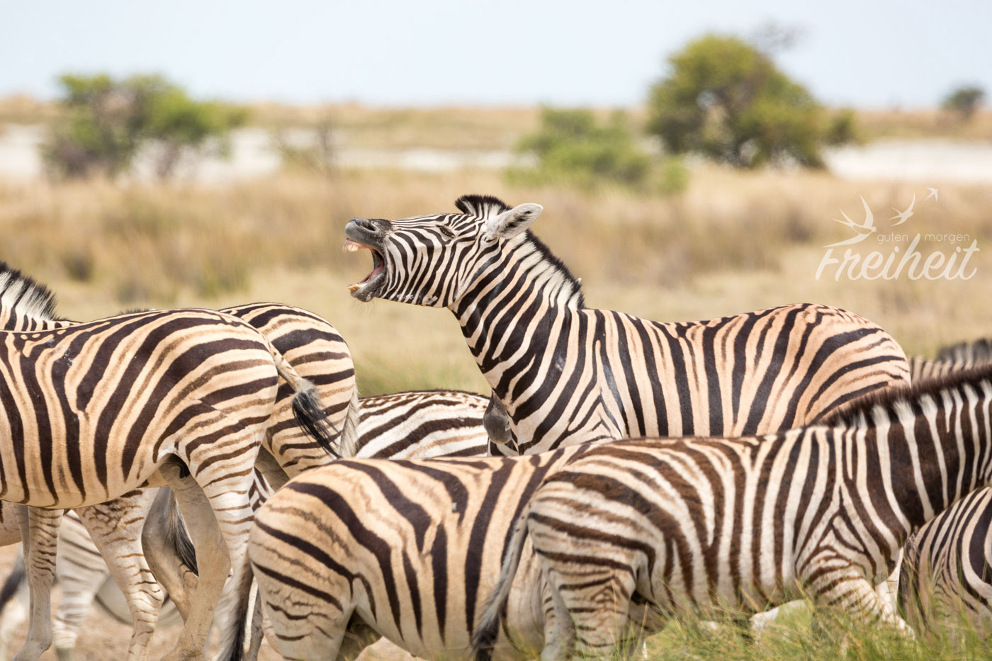 Ein Tier was einfach so eindeutig bestimmbar ist, dass wirklich jedes Kind das Zebra kennt! Mit ihrem Muster sind sie so auffällig, dass man kaum glauben kann, dass es auch eine gewisse Tarnung vor ihrem größten Feind – dem Löwen – bietet. Aus der Entfernung betrachtet verschmelzen sie zum Teil mit der heißen wabernden Luft, die man förmlich aufsteigen sieht. Die Zebra Streifen haben aber noch einen großen Vorteil: die TseTse Fliege hält sich fern von ihnen, denn sie landet nicht gerne auf konstrastreichen Farben 😀