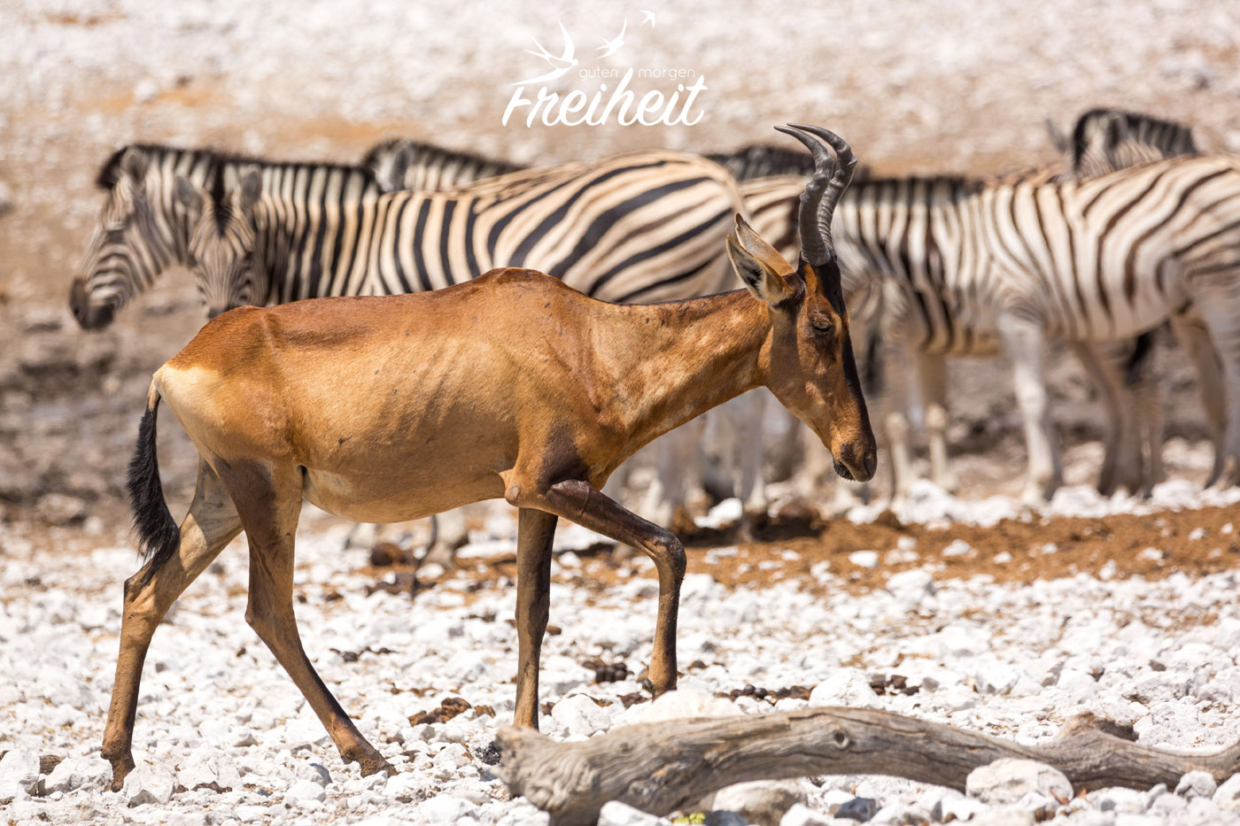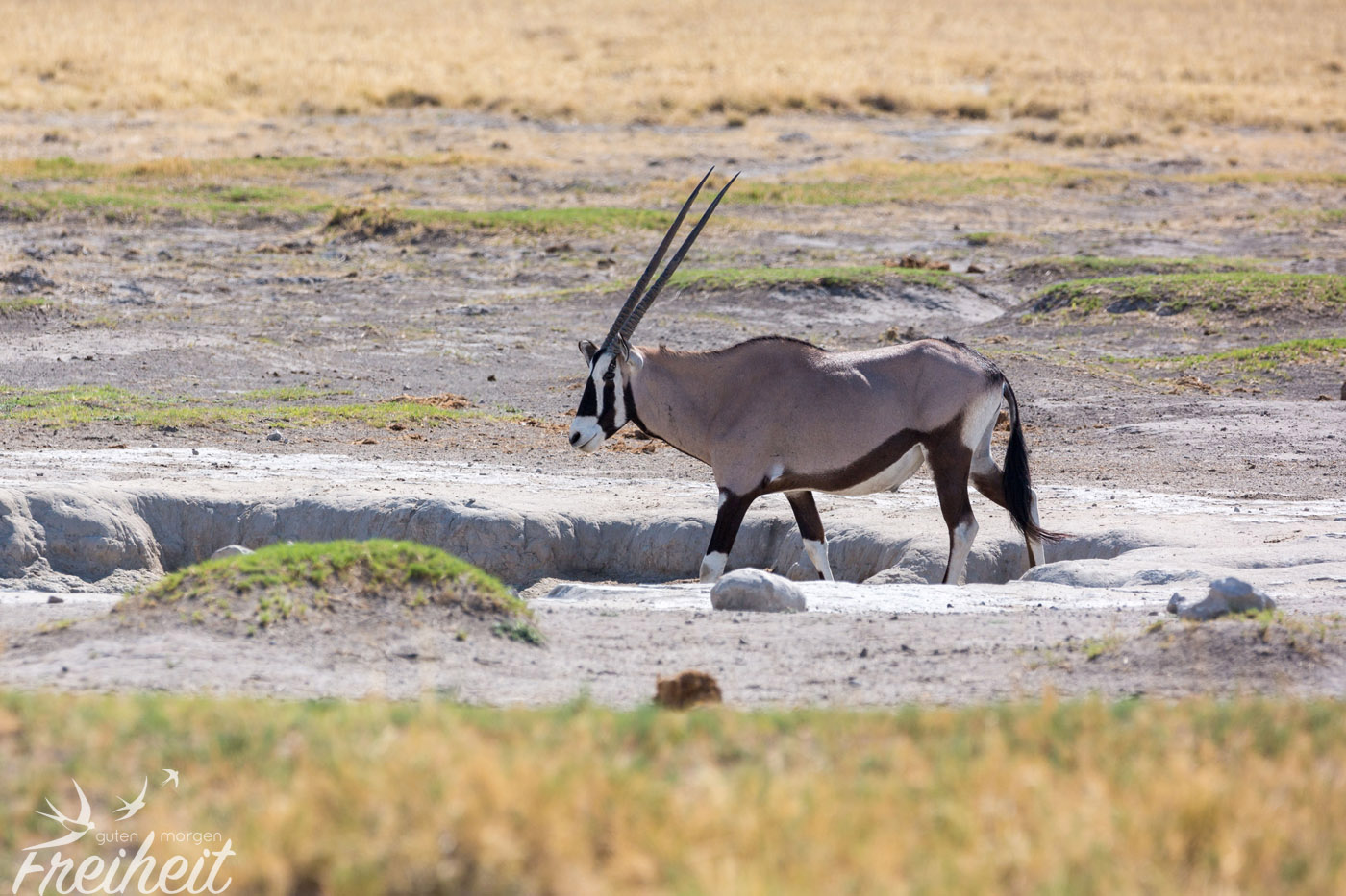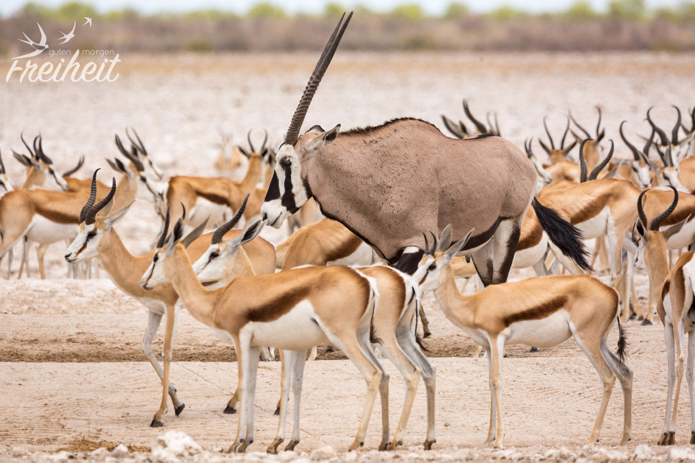 Das Wappentier Namibias ist ein echter Überlebenskünstler in den extremen Lebensbedingungen der Wüste und den Steppengebieten. Wir haben sie sogar in der Namibwüste – einer Sandwüste! – angetroffen. Ihr Geheimnis: Sie können ihre Körpertemperatur bis über 40 Grad erhöhen um so weniger Flüssigkeit durch Schwitzen zu verlieren. Grasen gehen sie gerne nachts, wenn die Pflanzen mehr Flüssigkeit enthalten.