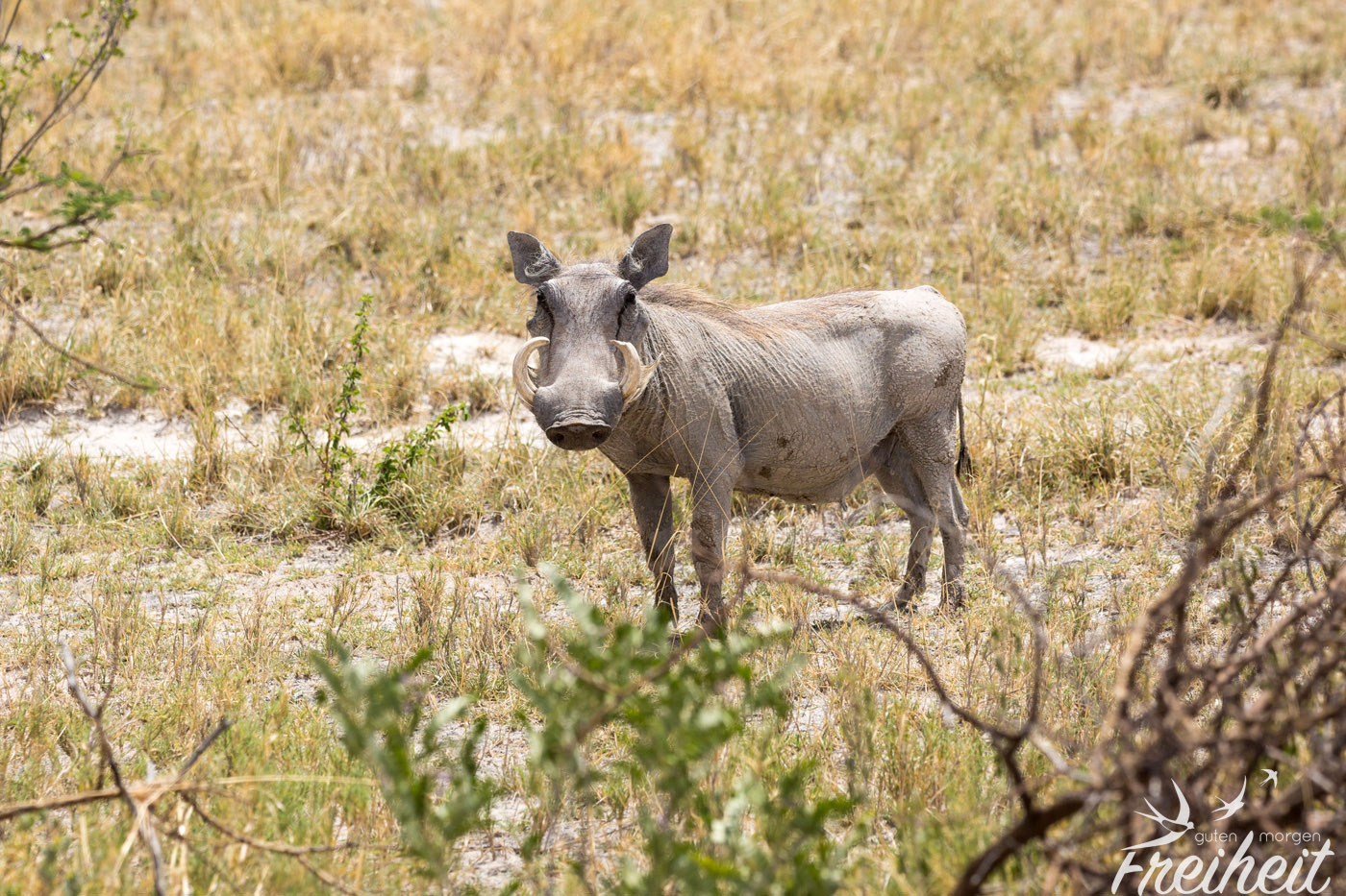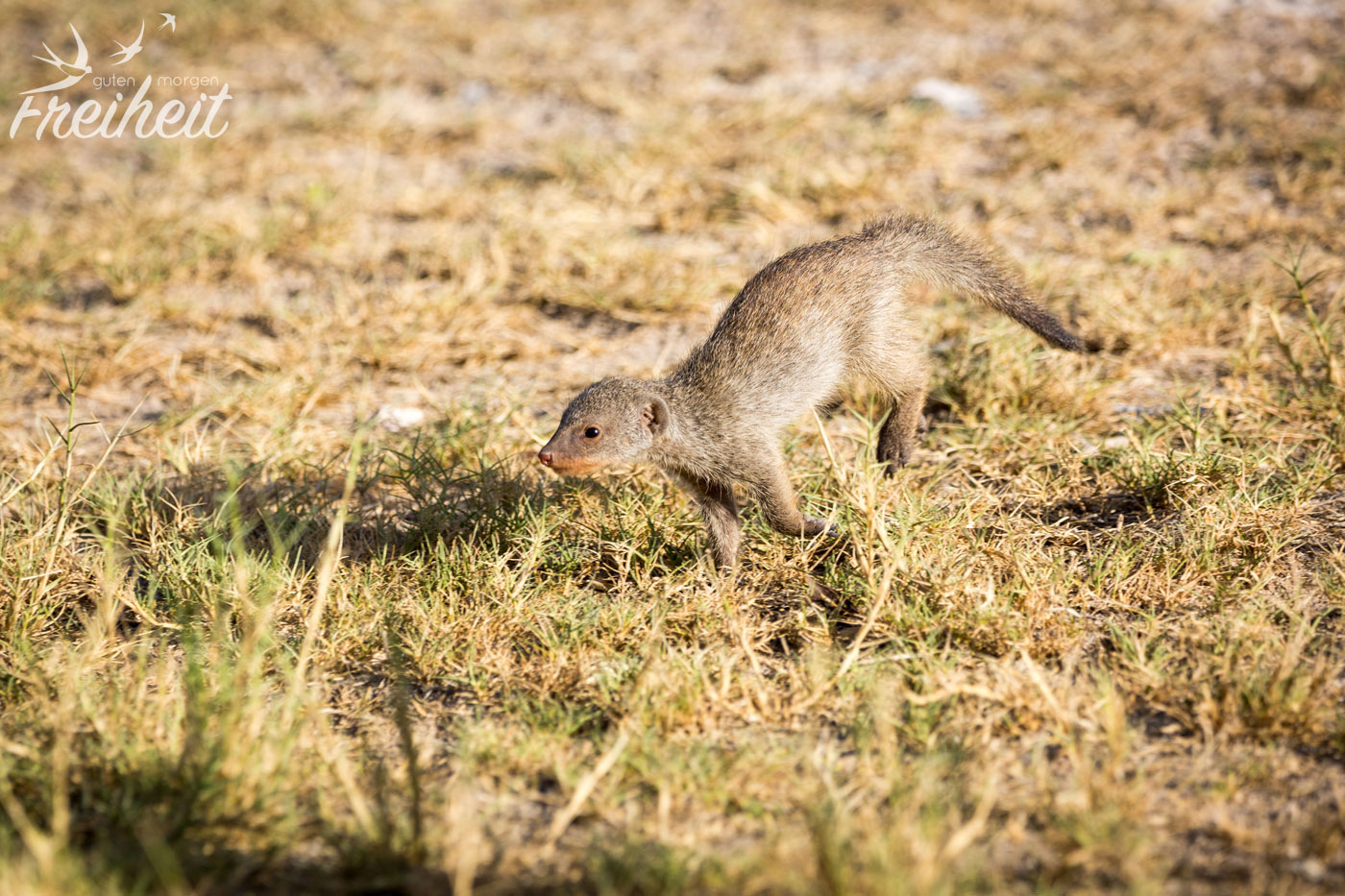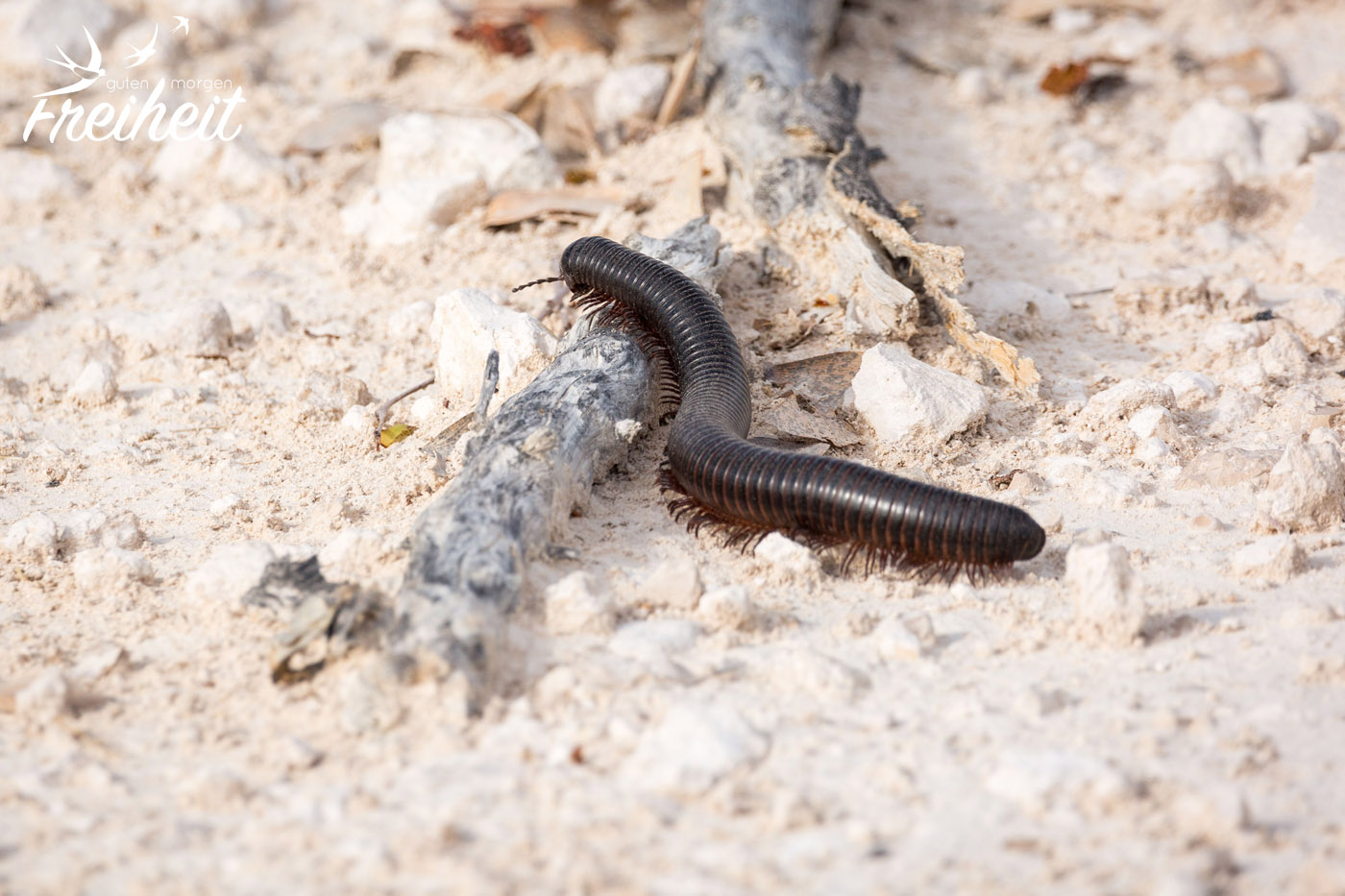 Wir haben natürlich noch viele weitere Tiere getroffen, aber nicht alle von ihnen regelmäßig oder oft. Trotzdem wollen wir sie euch nicht vorenthalten. Leider haben wir auch das Warzenschwein nur einmal gesichtet. Dabei hätten wir dem witzigen Tier zu gerne länger zugeschaut! Aber bei der einmaligen Begegnung war die Dame schnell außerhalb der Kameraweite. Überrascht hat uns die Begegnung mit einem Tausendfüßler mitten auf der Straße und einem Hasen im hohen Gras. Den Schakal haben wir zweimal gesehen und er war immer in Begleitung einer Hyäne. Die beiden passen eben gut zusammen 😉 Ansonsten gab es noch die Fuchsschwanz- und die Zebramangusten zu beobachten. Letztere sogar auf dem Campingplatz, wo sie nach Essensresten suchten.