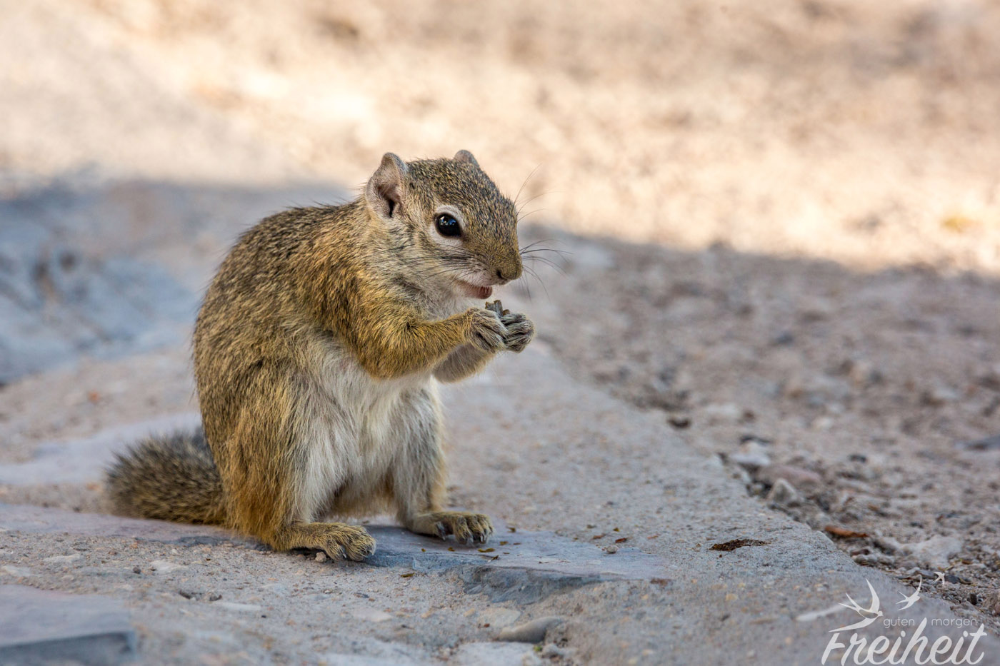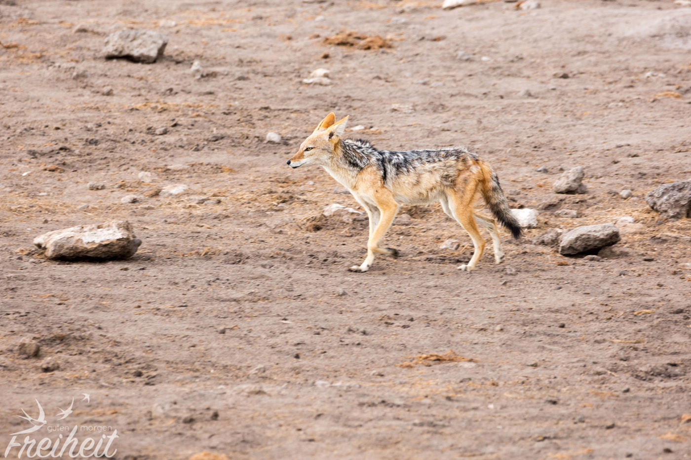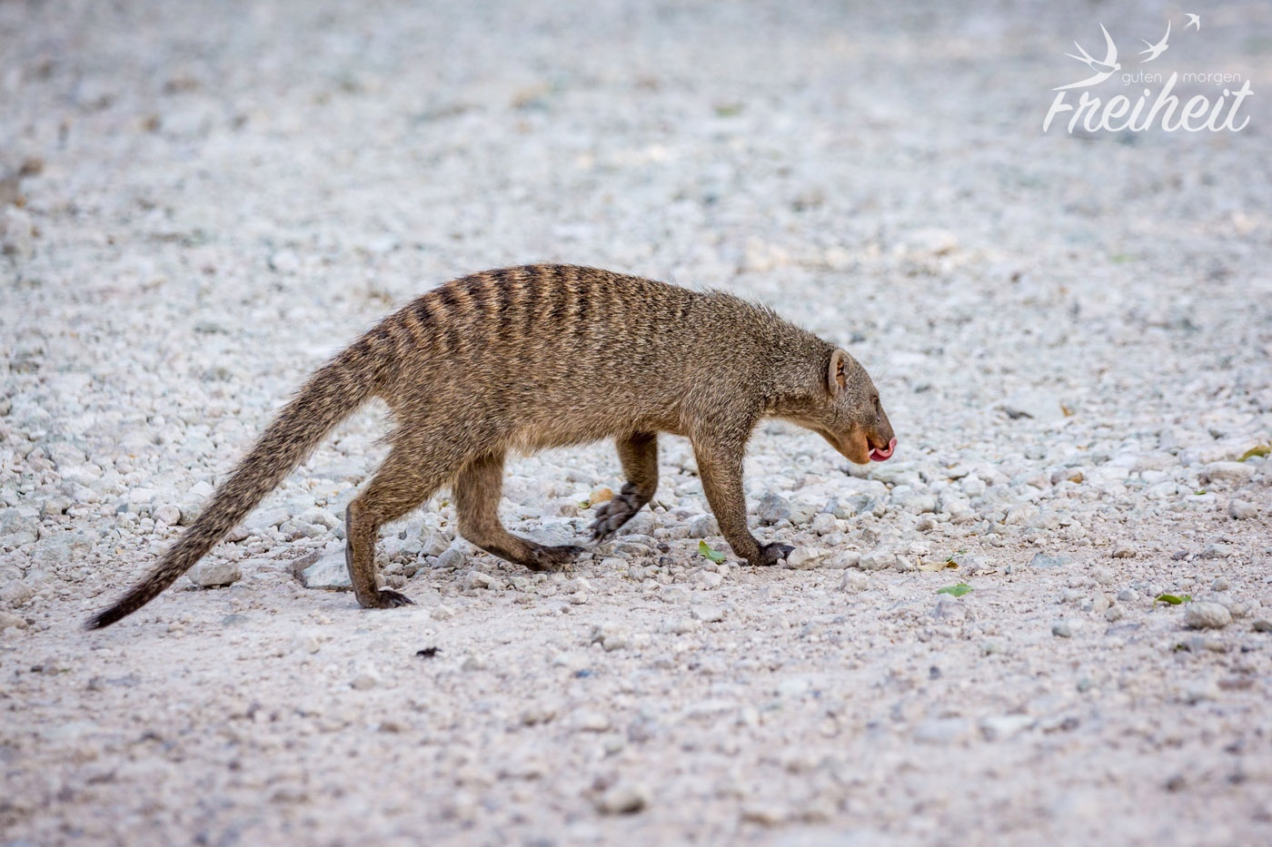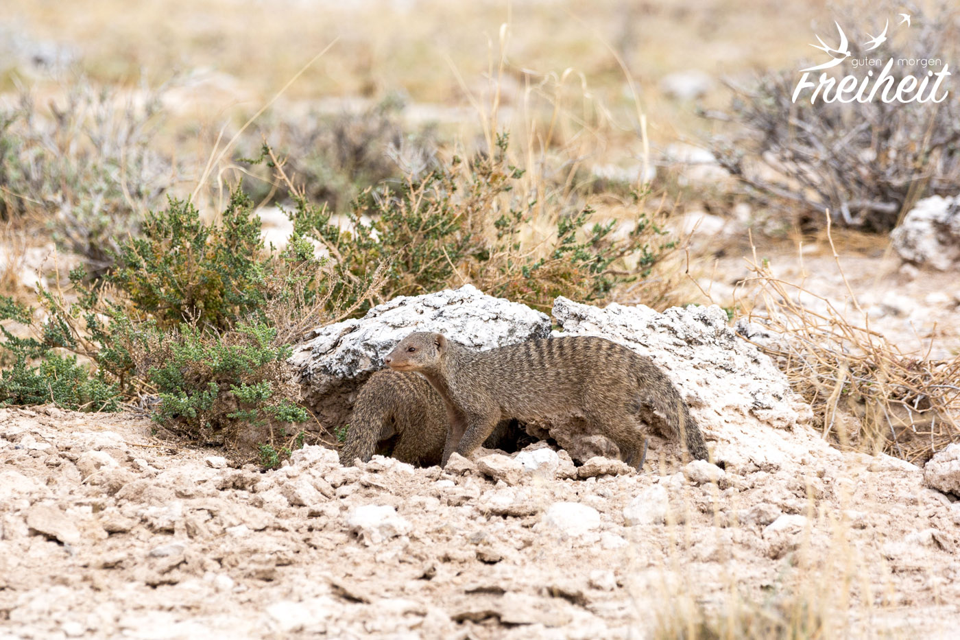 Wir haben natürlich noch viele weitere Tiere getroffen, aber nicht alle von ihnen regelmäßig oder oft. Trotzdem wollen wir sie euch nicht vorenthalten. Leider haben wir auch das Warzenschwein nur einmal gesichtet. Dabei hätten wir dem witzigen Tier zu gerne länger zugeschaut! Aber bei der einmaligen Begegnung war die Dame schnell außerhalb der Kameraweite. Überrascht hat uns die Begegnung mit einem Tausendfüßler mitten auf der Straße und einem Hasen im hohen Gras. Den Schakal haben wir zweimal gesehen und er war immer in Begleitung einer Hyäne. Die beiden passen eben gut zusammen 😉 Ansonsten gab es noch die Fuchsschwanz- und die Zebramangusten zu beobachten. Letztere sogar auf dem Campingplatz, wo sie nach Essensresten suchten.