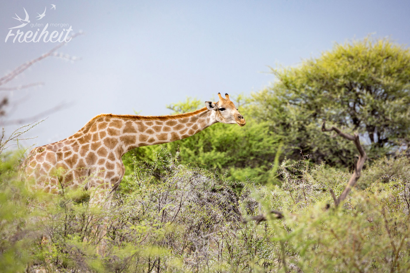 Giraffen sind einfach unglaublich beeindruckende und elegante Tiere. Sie laufen anmutig und fast schon wie in Zeitlupe durch die Steppenlandschaft und grasen vorallem die Blätter, Zweige und Dornen der Akazienbäume ab. Dank iher rauhen und bis zu einem halben Meter(!) langen Zunge kommt sie an ihre Lieblingskost gut heran und auch die Dornen machen ihr nichts aus. Bis zu 70kg verschlingt so eine Giraffe am Tag! Dank ihres 4 Kammern Magens, verträgt sie auch das unverdaulichste Grünzeug 😉