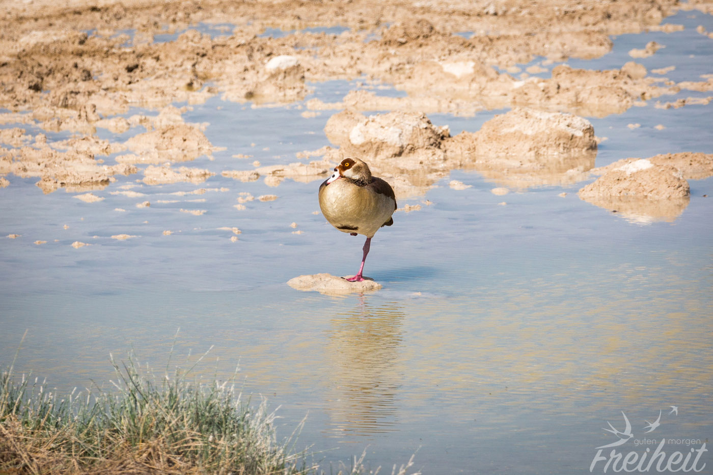 Wie haben sowohl Familienverbände als auch Paare und Einzelgänger gesehen. Es sind beeindruckend große und schnelle Vögel, die mit ihrem kleinen Nachwuchs besonders wachsam sind und wenig Nähe zulassen, wo wir dann wieder beim Thema „von hinten sehen“ wären 😉