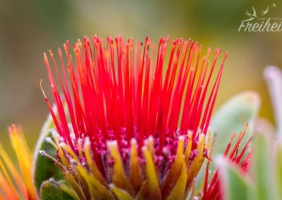 Botanische Gärten sind für uns wie Museen für andere. Ist irgendwo einer in der Nähe, dann wollen wir ihn besuchen. Zumindest wenn er so tolle Vorschusslorbeeren wie der Kirstenbosch Garten bekommt. „Einer der schönsten Botanischen Gärten der Welt“ „Unglaubliche Szenerie“ „Absolut sehenswert“ – um nur ein paar zu nennen 😉 Das Besondere an dem Garten ist, dass hier nur die einheimische Pflanzenwelt, die auch in der Kap Region zu finden ist, bewahrt wird. Die Nationalblume des Landes, die Protea, ist die bekannteste Vertreterin des Garten. Die sehr beliebte Schnittblume blüht vorallem im September und dann leuchtet es überall in Rot, Gelb und Orange. Wir sind leider zur falschen Zeit da. Die volle Farbenpracht der Kap Flora und vorallem des Fynbos entfaltet sich im südafrikanischen Frühling (ab August). Soll ein echtes Farbenfest sein! Fynbos ist übrigens ein Ökosystem, dass nur in Südafrika zu finden ist und aus über 7000 Farn- und Blütenpflanzenarten besteht. Die berühmteste Pflanze ist sicher der Rotbusch. Ja, genau – der aus dem der bekannte Tee gewonnen wird 😉