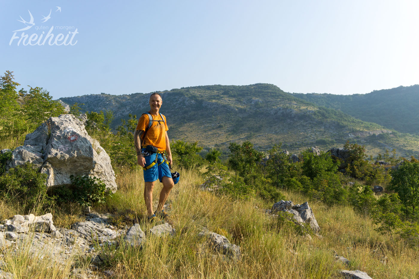 Der morgige Tag wird ein spannender für uns. Besonders für Carsten. Wir wollen uns nämlich in einen Klettersteig wagen. Vor einem Jahr wäre das nichts Ungewöhnliches gewesen. Aber seit Carstens Bandscheiben OP war da bis vor Kurzem noch lange nicht dran zu denken. Weshalb wir für unsere Europa Tour auch kein Klettersteig Equipment mitgenommen haben. Glücklicherweise gibt es im Ort die Möglichkeit Helme und Gurte etc. zu leihen. Und da Carstens Rücken in den letzten paar Wochen deutlich besser geworden ist, wollen wir den Versuch wagen. Der Klettersteig „Vulin Potok“ ist mit einer Bewertung von C und einer Länge von 1,5h ein perfekter Einstieg. Auch wenn es eine Weile gebraucht hat bis wir an die Klettersteigausrüstung gekommen sind (längere Geschichte), so ist das Leihmaterial nicht nur total neu und modern sondern mit 30 Mark pro Stück (also nur 15€) echt günstig. Prima, so steht dem Tag nichts mehr entgegen!