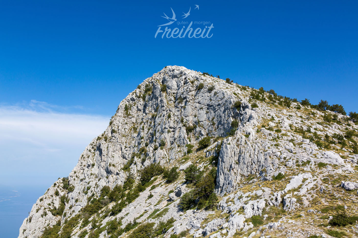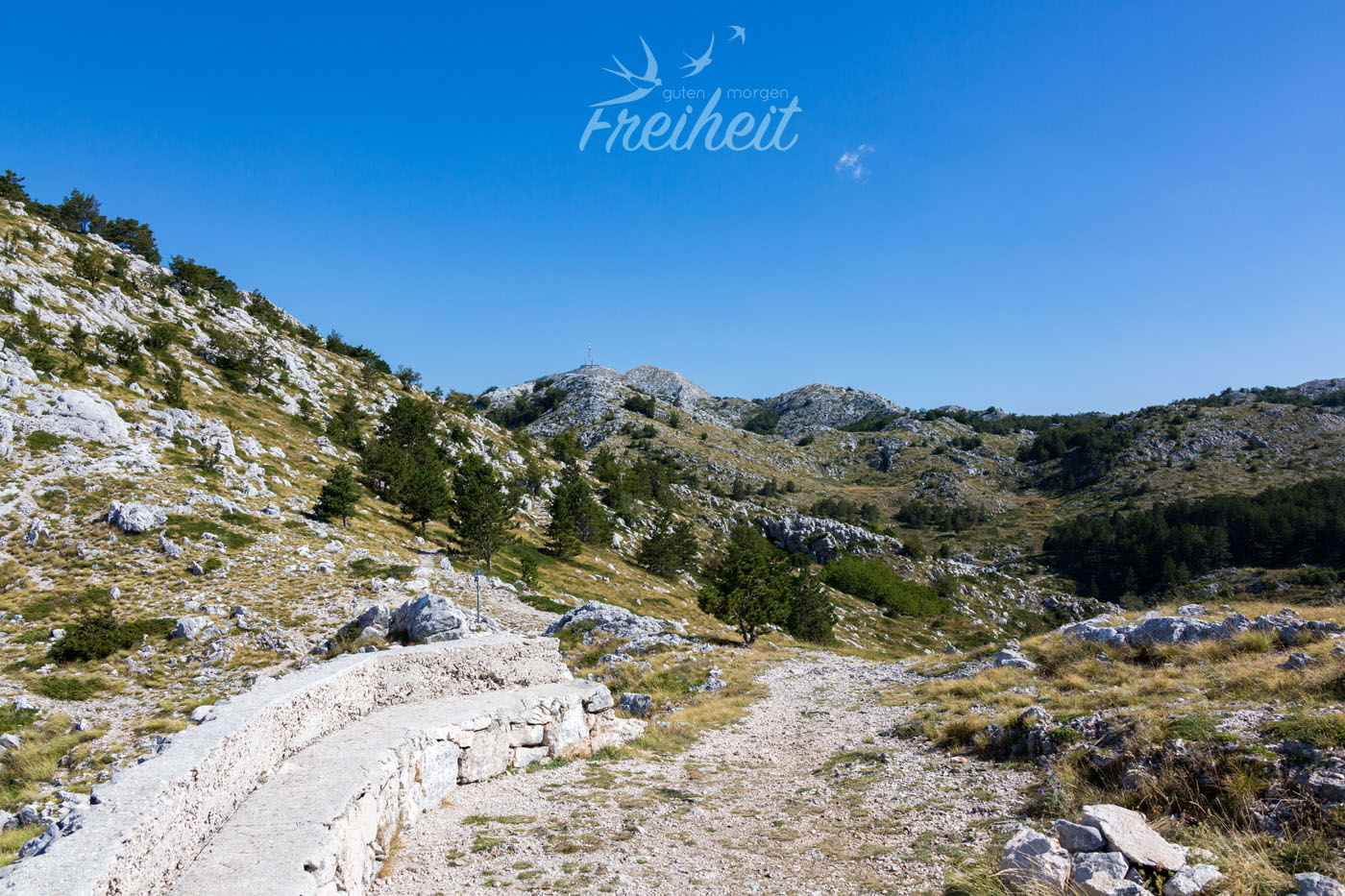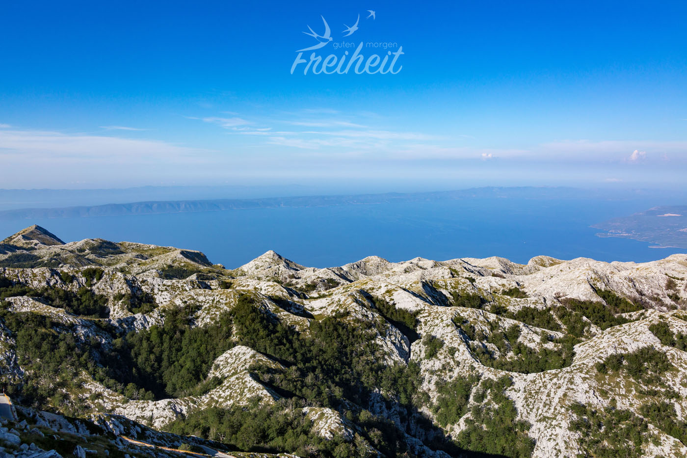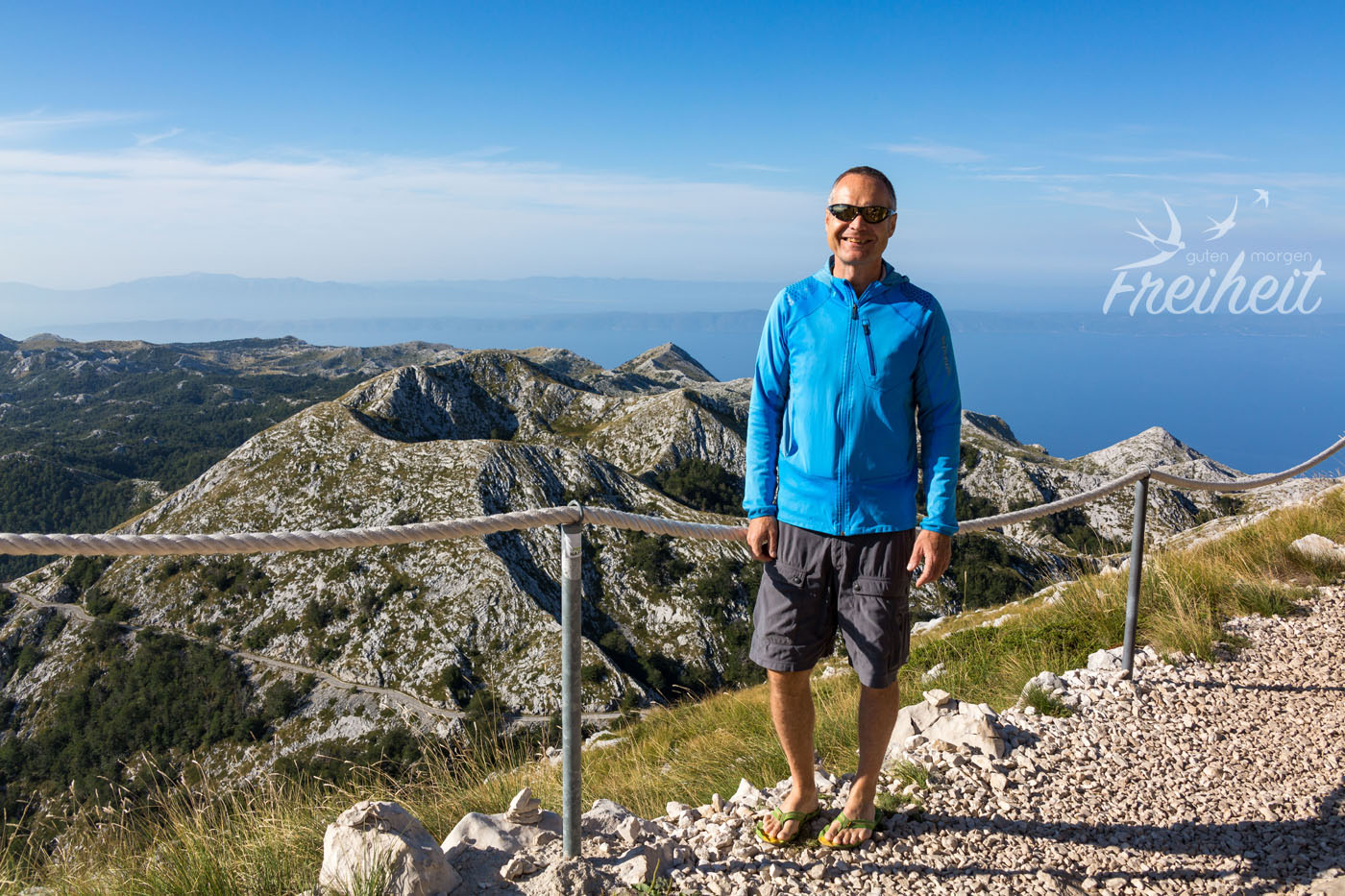 Nach dieser kleinen Ablenkung hat Nadine eine wage Vermutung. Die Festplatten könnten vielleicht in einer Schublade in unserer letzten Unterkunft in Mostar liegen. Vielleicht, hoffentlich! Wir schreiben erneut den Vermieter in Mostar an. Um 21.00 Uhr antwortet er, dass schon neue Mieter in unserem alten Apartment seien und er nicht stören wolle. Er melde sich am nächsten Tag wieder. Na toll, also weiter bangen und hoffen. Damit wir nicht komplett am Rad drehen planen wir unseren nächsten Tag, als ob nichts geschehen wäre – nur mit der kleinen Änderung, dass wir uns im Anschluss eine mögliche direkte Rückfahrt nach Mostar vorbehalten. Morgens um sechs Uhr fahren wir zur 23 km entfernten Mautstation in Podgora, um über eine tolle Passstraße durch den Biokovo Nationalpark auf den Gipfel des Sveti Jure (1762m) zu gelangen. Google Maps sei Dank endet der erst Versuch am Einstieg einer Mountainbike Strecke zum Gipfel. Sicher auch schön, aber eben nicht mit dem Auto. Also wieder ein paar Kilometer zurück und in die entgegengesetzte Richtung gefahren, schon sind wir an der Mautstation. Ein super netter Herr erklärt uns auf Deutsch, dass besonders Sonnenschutz und warme Jacken am Gipfel wichtig wären und wünscht uns einen schönen Tag. Wir haben eh alles mit (mit Ausnahme der Festplatten) und freuen uns auf die Aussicht. Bis dahin bedeutet es allerdings sich eine Stunde lang Kurve für Kurve die schmale Straße hoch zu arbeiten. 1400 Höhenmeter verteilt auf 24 Kilometern.