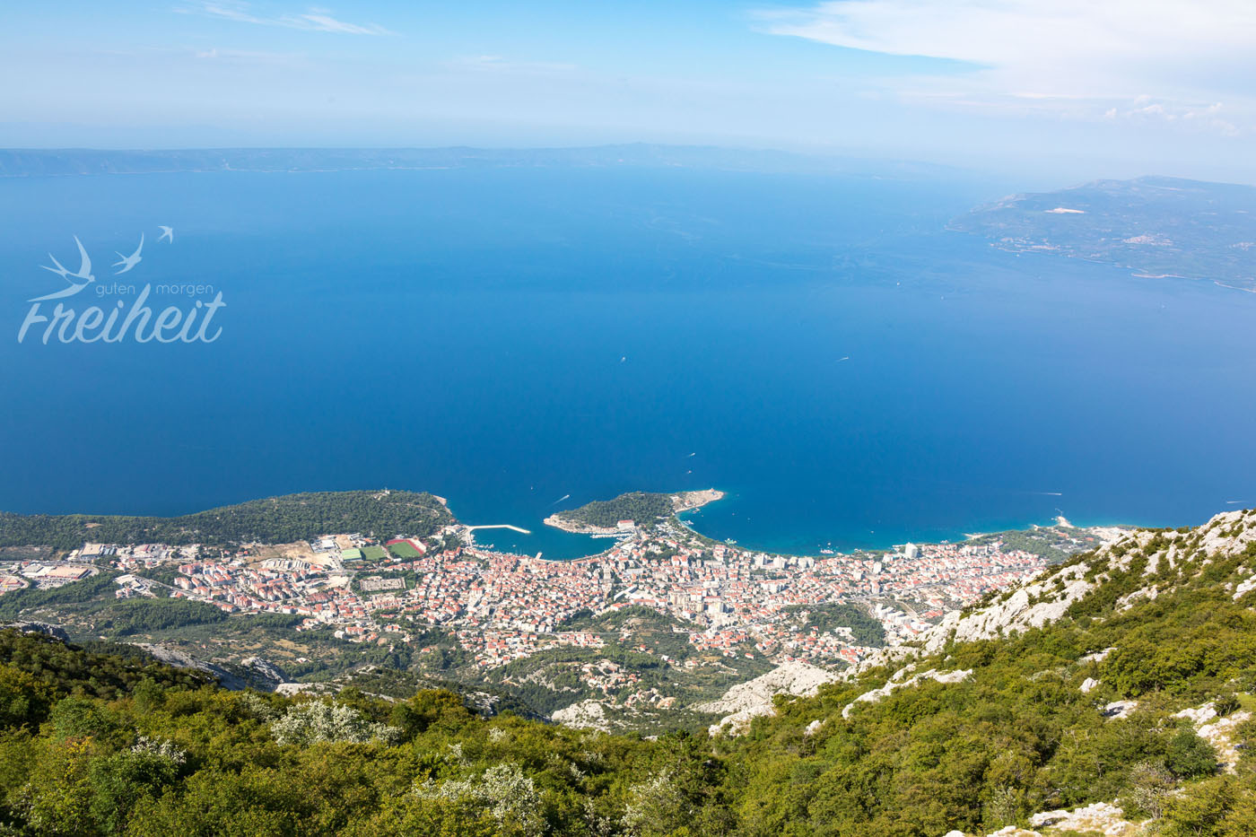 Nach einem Drittel der Strecke bietet sich noch eine kurze 20-mimütige Wanderung zu einem Aussichtspunkt auf den Küstenort Makarska an. Die nehmen wir noch mit – ein bisschen Wandern muss dann doch drin sein – und Müsli Frühstück folgt im Anschluss. Weiter geht es auf der schmalen Straße, aber schon recht bald folgt eine etwas entspanntere Fahrbahnbreite und dann darf es auch wieder voller werden 😉
