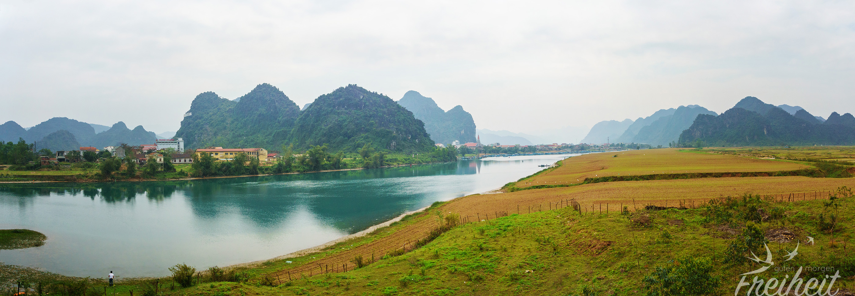 Morgens um fünf kommen wir in Ninh Binh an. Nach einem dringenden Toilettenbesuch werden wir von einem netten Taxifahrer, einem Freund vom neuen Gästehausbetreiber, in unsere Unterkunft gefahren. Dort werden wir schon erwartet und können direkt aufs Zimmer. Draußen wird es hell und der Staatsfunk sendet blechern und laut über die vielen im Tal verteilten Megafone seine Morgengrüße. Wir holen erst mal Schlaf nach. Guten Morgen Vietnam.