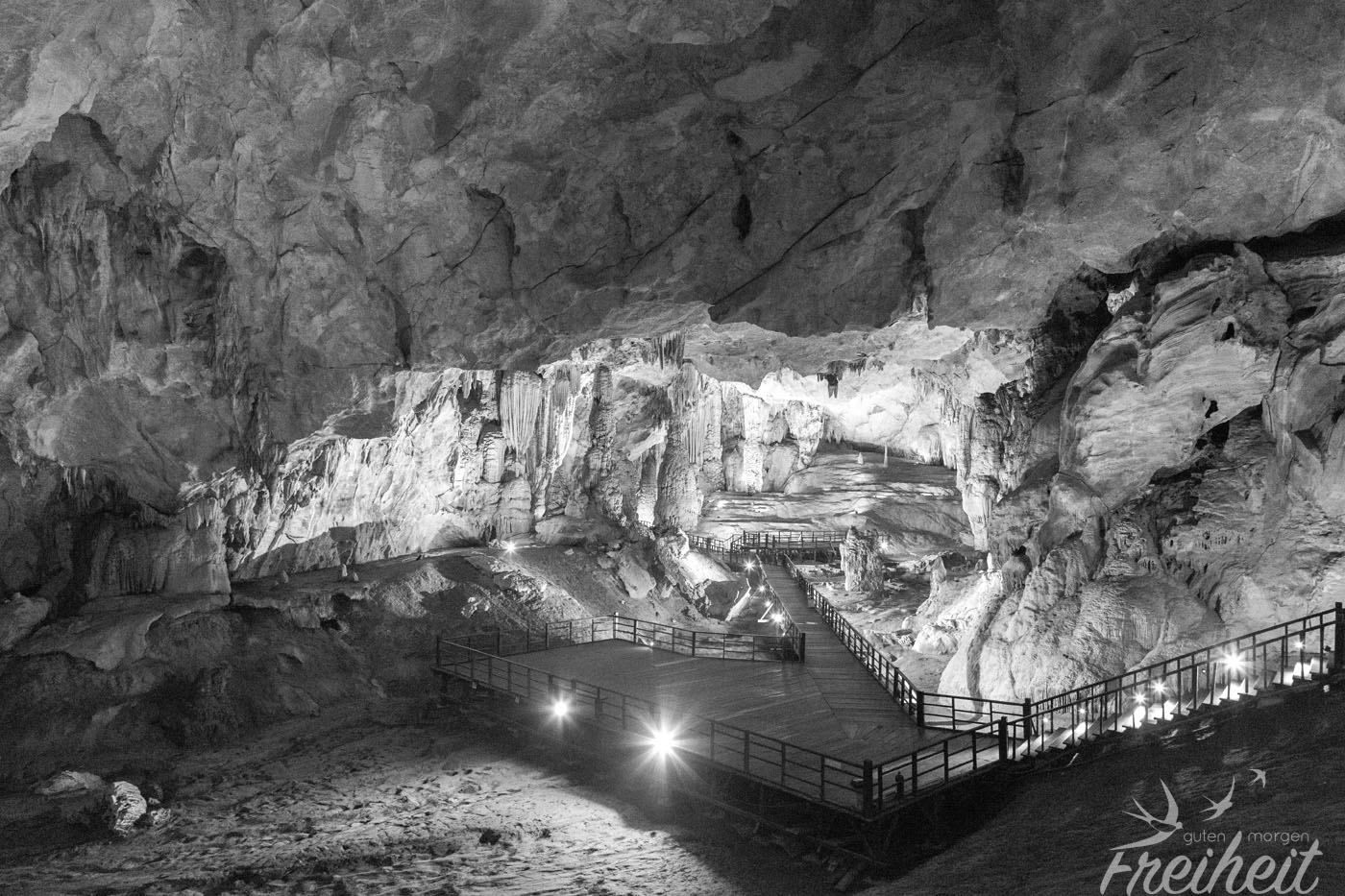Wir stellen uns vor, wie es den Entdeckern gegangen sein muss. Ob sie überhaupt mit ihren Stirnlampen die Decke sehen konnten? Immerhin ist sie 72m hoch. Muss schon eine verdammt starke Funzel sein! Die breiteste Stelle soll sogar 150m breit sein. An diesem Tag erfüllten sich bestimmt die kühnsten Träume der Forschergruppe 🙂