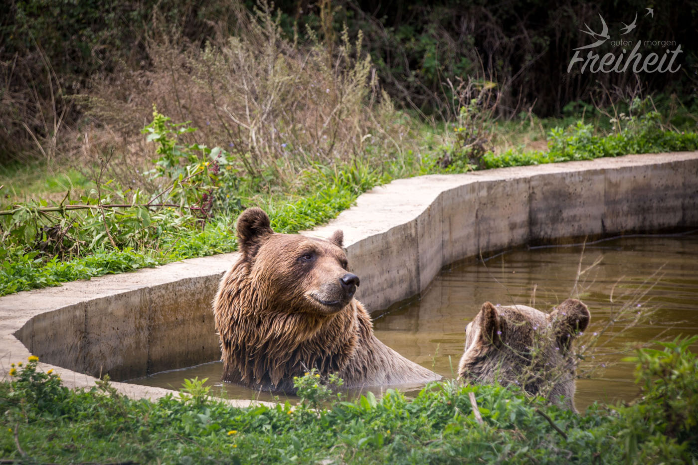 Mittlerweile leben 19 Braunbären in dem 16 Hektar großen Park. Neben mehreren einhundert Quadratmeter großen Eingewöhnungsgehegen gibt es auch viele weitläufige Freigehege. Geschulte Tierpfleger beobachten die Verhaltensweisen der Bären. Die meisten brauchen Zeit bis sie ihre aus der jahrelangen Gefangenschaft antrainierten Gewohnheiten ablegen. Auch der Gesundheitszustand wird gut überwacht. Oftmals bekommen die Bären hier im Park das erste Mal artgerechtes Futter und die sanften Tiere blühen wieder richtig auf. Lethargisches im Kreis drehen oder auf und ab gehen wird nach und nach abgelegt. Das alles braucht aber Zeit. Bei dem einen mehr, bei dem anderen weniger. Ein echtes Erfolgserlebnis für den Park war, als der erste Bär eine Höhle baute und Winterschlaf hielt. Etwas was in der Gefangenschaft nicht möglich war.