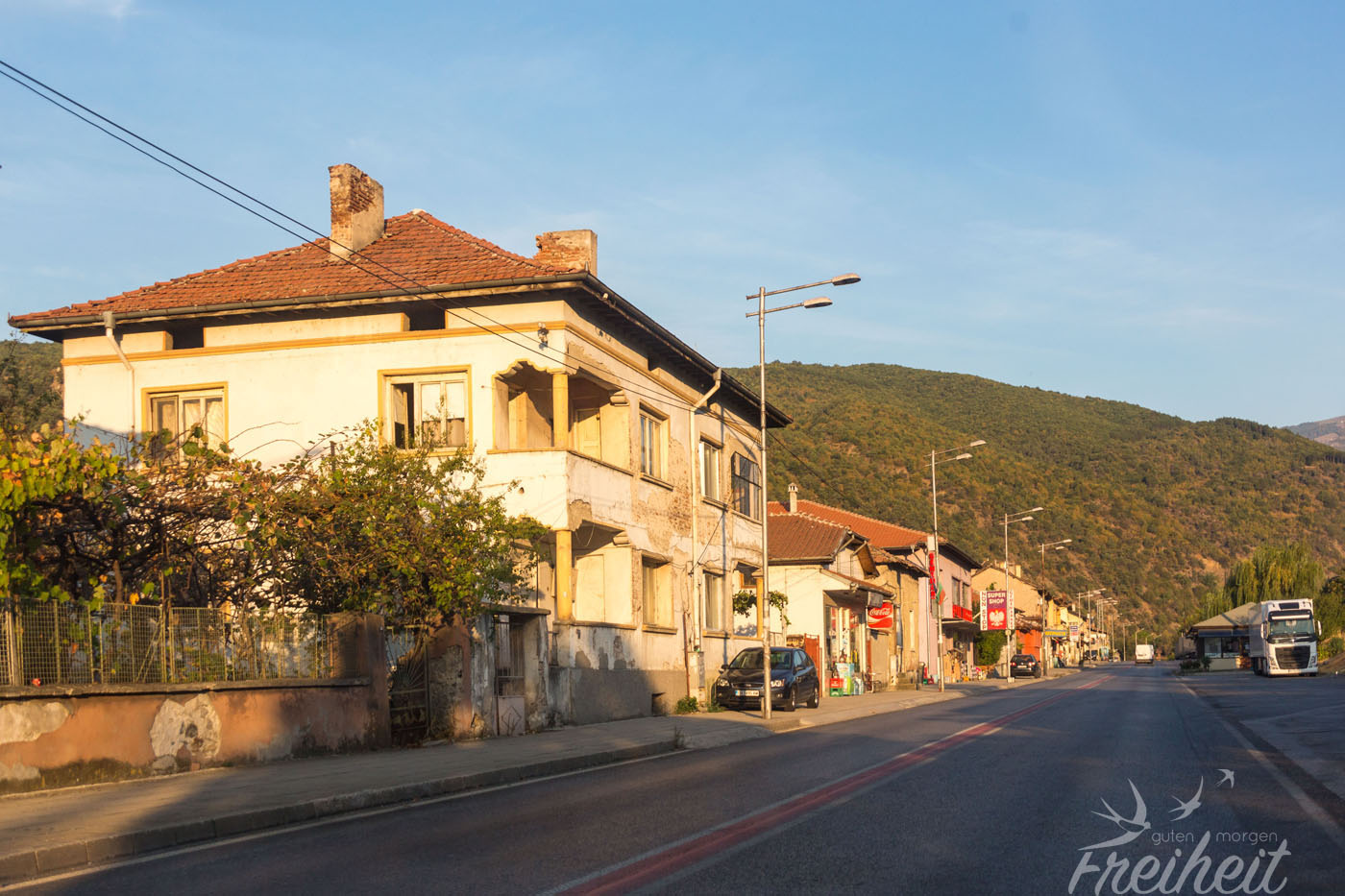 Früh am Morgen verlassen wir unseren Campingplatz und steuern den Rila Nationalpark an. Wir fahren auf – zum Glück – sehr guten Schnellstraßen und können so die bergige Landschaft, die in gold-rotes Licht getaucht wird, genießen. Nach guten anderthalb Stunden biegen wir auf eine schmale Landstraße ab, die uns durch ein Tal und seine Dörfer führt. Bulgarien ist ein armes Land – das ärmste innerhalb der EU – und das bekommen wir schnell zu spüren. Neben tristen Häuserfassaden kommen uns immer wieder Pferdekutschen entgegen. Es gibt sogar Verkehrsschilder, die Achtung gebietend auf dieses Transportmittel hinweisen.