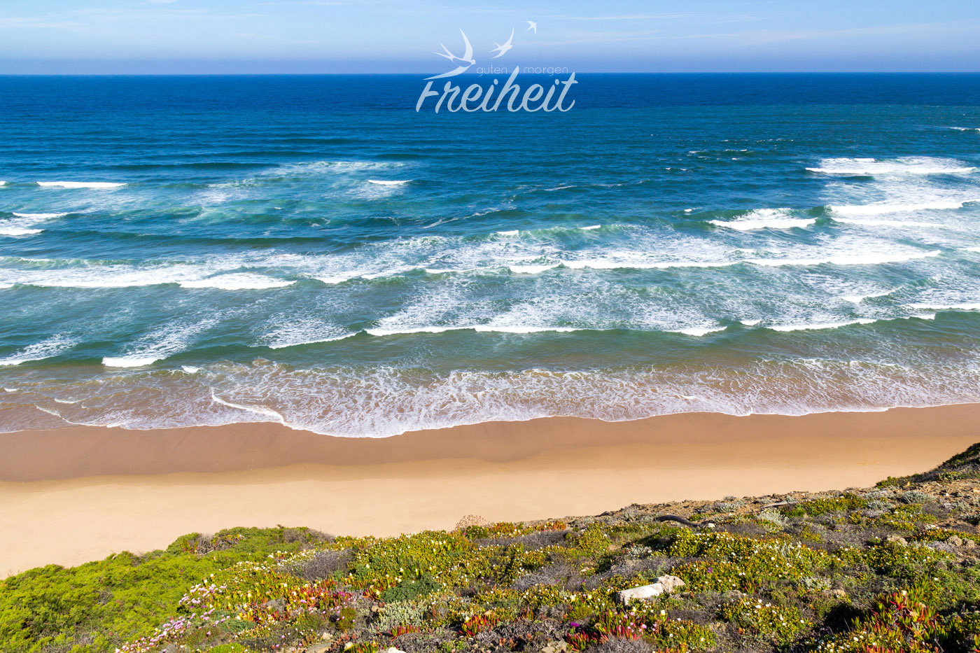 Der wohl breiteste Strand der gesamten Küste Portugals ist der Praia da Bordeira. Ganze 3km misst er an seiner breitesten Stelle! Ein Paradies für Sandburgenbauer 😉 Neben dieser Besonderheit, gibt es noch eine zweite. Ein Fluss schlängelt sich am südlichen Rand des Strandes und mündelt schließlich im Atlantik. So kann man sowohl im Salzwasser als auch im ruhigen Süßwasser des Flusses baden gehen. Perfekt für Familien mit Kindern. Der Atlantik kann nämlich durchaus sehr rau werden und ist eher Spielwiese der Kitesurfer und Surfer. Über Holzstege auf den Dünen kann man den gesamten Strand überblicken. Definitiv sehenswert! Wer hier den Tag verbringen will, muss selbst für Proviant sorgen, denn eine Imbissbude gibt es nicht.
