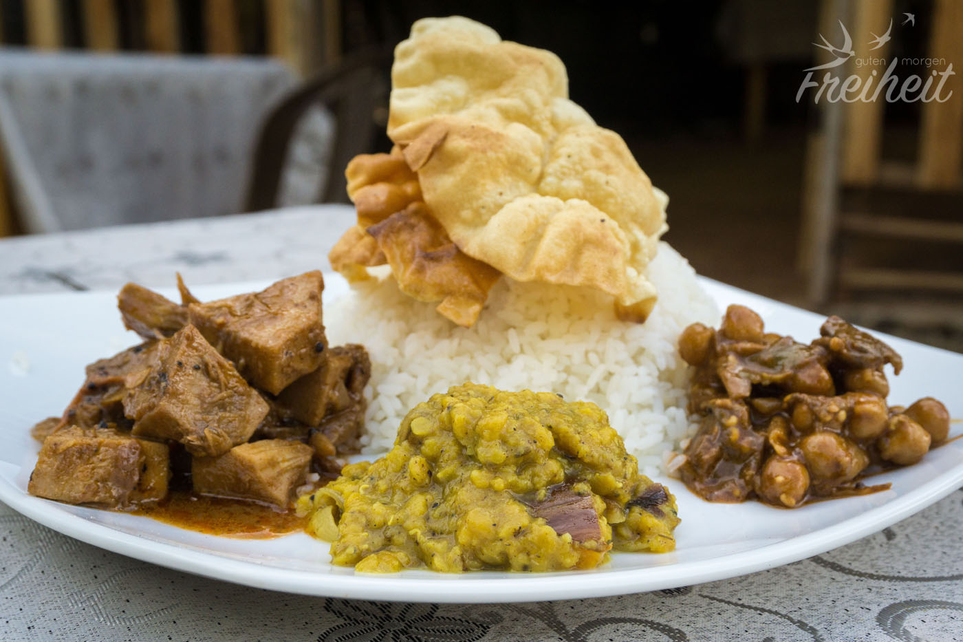 Unser Hunger meldet sich und wir machen uns auf die Suche nach einem netten Restaurant. Gleich ums Eck finden wir „Ninas Restaurant“. Als nun noch die Besitzerin herauskommt und uns freundlich anspricht, gehen wir hinein. Es ist eine sehr gute Entscheidung. Das Essen ist mega lecker und das Besitzerehepaar ist sehr herzlich. Das Restaurant ist nach der 18 Monate alten Tochter Nina benannt und erst seit kurzem geöffnet. Wir finden es hier so toll, dass wir von da an fast jede Mahlzeit hier verbringen. Und weil wir so gute Gespräche mit den beiden Besitzern haben, trauen wir uns auch zu fragen, ob es möglich sei ein Curry aus der unreifen Jackfrucht zu bekommen. Die Augen der Beiden strahlen und sie versichern uns, dass wir für den nächsten Abend eins bekommen werden. Sie lieben Jackfrucht Curry ebenso wie wir. Nur normalerweise fragt eben kein Tourist danach 😉