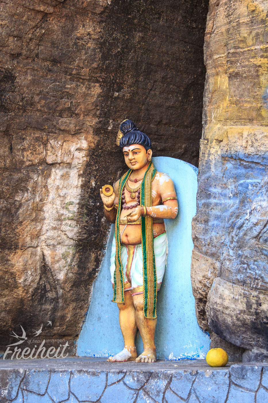 Unser letzter Tag in Trinco führt uns vom Strand direkt ins Zentrum bzw. an den höchsten Punkt der Stadt. Wir lassen uns noch vor dem Frühstück von einem Tuk Tuk hoch zum Hindu Tempel Thiru Koneswaram fahren und wohnen einer Puya (eine Art Gottesdienst mit Fotografieverbot 🙁 ) um 8.30 Uhr bei. Dieser Tempel ist vor allem wegen seiner großen blauen Shiva Statue und seinem tollen Ausblick auf Trinco und das Meer bekannt. Wir sind zuerst noch fast allein, doch schnell füllt sich das Gelände obwohl es noch recht früh ist.