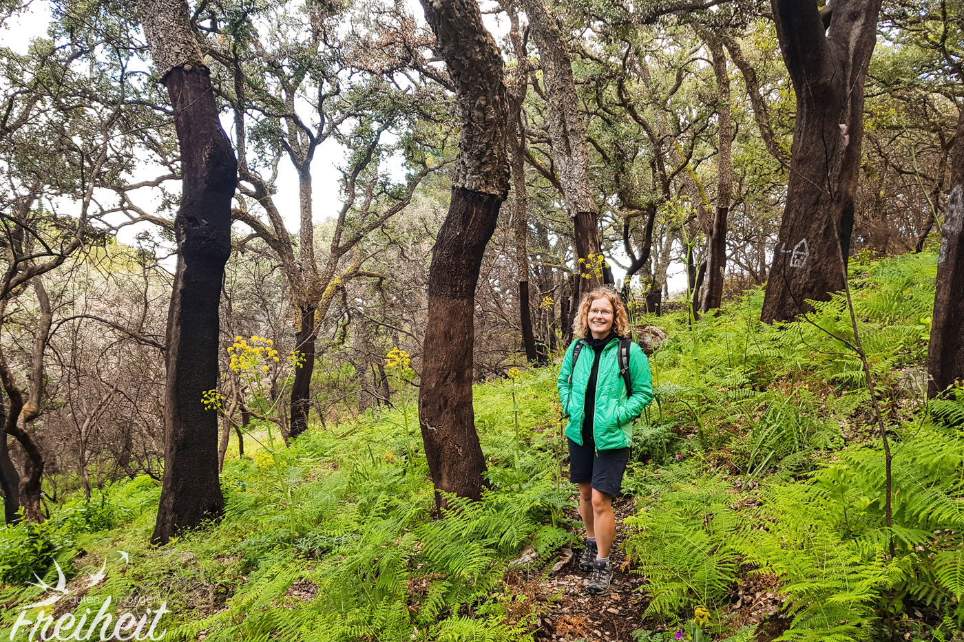 Nach ausgiebiger Rast, machen wir uns wieder an den Abstieg und begegnen nun auch den ersten (deutschen 😉 ) Wandergruppen. Wir freuen uns, denn wir haben wieder alles richtig gemacht mit dem früh losgehen 😀 Der Abstieg ist identisch mit dem Aufstieg, aber es wäre auch ein Rundwanderung möglich. Allerdings fanden wir den Eichenwald so schön, dass wir ihn sehr gerne noch einmal durchwandern. Die Weltreise hat bei uns eine wachsende Liebe zu Bäumen angestoßen. Angefangen bei den Würgefeigen in Angkor Wat, weiter zu den echten Regenwäldern in Indonesien bis hin zu so spannenden Exemplaren wie den Baobabbäumen oder den Köcherbäumen. Manchmal kann einen die Vielfalt der Natur umhauen. Wir müssen allerdings endlich anfangen sie bedingungslos zu (be-)schützen.