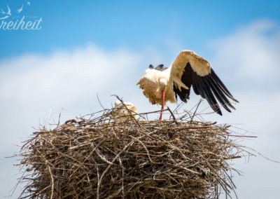 Zurück am Auto fahren wir wieder Richtung Küste und machen noch einen Umweg über das Bergdorf Silves. Direkt vom Straßenrand aus beobachten wir wie eine ganze Horde an Störchen über eine Wiese stakst. Ein paar Minuten später sehen wir mächtige Storchennester auf Leitungsmasten mit neugierig heraus äugendem Nachwuchs. Zum Glück können wir den Wagen gut abstellen und kommen nah genug heran um von unten ein paar Fotos machen zu können 😀 Einfach süß die Kleinen, oder? Und sogar gleich drei Stück! In Deutschland sieht man ja nur in ganz wenigen Regionen diese stolzen Vögel, aber hier im Süden Portugals sind sie wahrlich keine Seltenheit 🙂