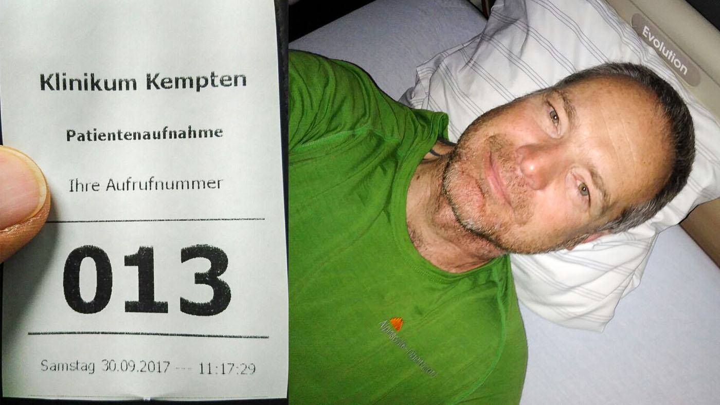 Anfang September – noch als Bergführer mit Gästen unterwegs – zwickte mein Rücken etwas. Bisserl verhoben, bisserl Ibuprofen, bisserl Bier – das wird schon wieder. Ein paar Tage später habe ich beim Abendessen auf der Hütte niesen müssen und das war gar nicht gut. Aufrecht gehen war nicht mehr möglich, schmerzfrei gehen oder heben schon gar nicht. Tags darauf im Bus, auf der Rückfahrt von Meran nach Oberstdorf wurde klar, meine Wandersaison ist vorüber, die Schmerzen in der Lendenwirbelsäule machen es mir unmöglich in die Berge zu gehen, geschweige denn Gäste über die Alpen zu führen. Ab zum Arzt. Der Hausarzt machte mir noch Hoffnung, spritzte alles Mögliche und gab mir Schmerzmittel. Eine Woche später waren der Orthopäde und Physiotherapeut nicht mehr so optimistisch, deshalb ab zum MRT und zwei Tage später unters Messer – schwerer Bandscheibenvorfall ohne Chance auf Besserung ohne OP. Die OP selbst verlief gut und die unerträglichen Schmerzen im Rücken waren wie weggeblasen. Nur die mangelnde Kraft im rechten Bein und die tauben Stellen am rechten Fuß und Unterschenkel sind geblieben. Folgen des eingeklemmten Ischiasnervs, der durch den Bandscheibenvorfall stark eingeklemmt wurde.