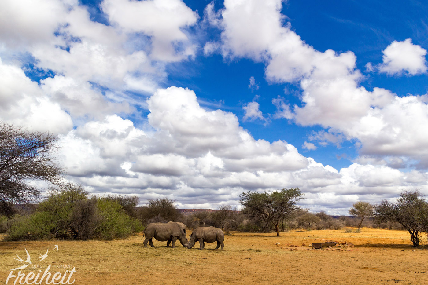 Das neue Jahr kann beginnen und in unserem Fall ist es ein Standortwechsel zum Waterberg Wilderness Naturreservat. Dieses privatbetriebene Naturreservat grenzt ohne Zaun an den offiziellen Nationalpark des Waterberg und gibt das Gebiet der ehemaligen Rinderfarm seit dem Jahre 2000 den Wildtieren zurück. Zahlreiche Wildtiere, darunter auch das Breitmaul-Nashorn wurden wieder angesiedelt und werden vor Wilderern geschützt. Das Nashorn auf die es Wilderer abgesehen haben, wird sowohl durch anwesende Wachleute beschützt als auch teilweise durch das sorgsame Kürzen des Horns selbst. Denn nur um das Horn geht es ihnen. In Asien kann man richtig viel Geld damit gewinnen, denn es gilt als traditionelles Heilmittel. Glücklicherweise gab es am Waterberg seit der Wiederansiedlung der Tiere noch keinen erfolgreichen Versuch der Wilderer. Hoffentlich bleibt das so!