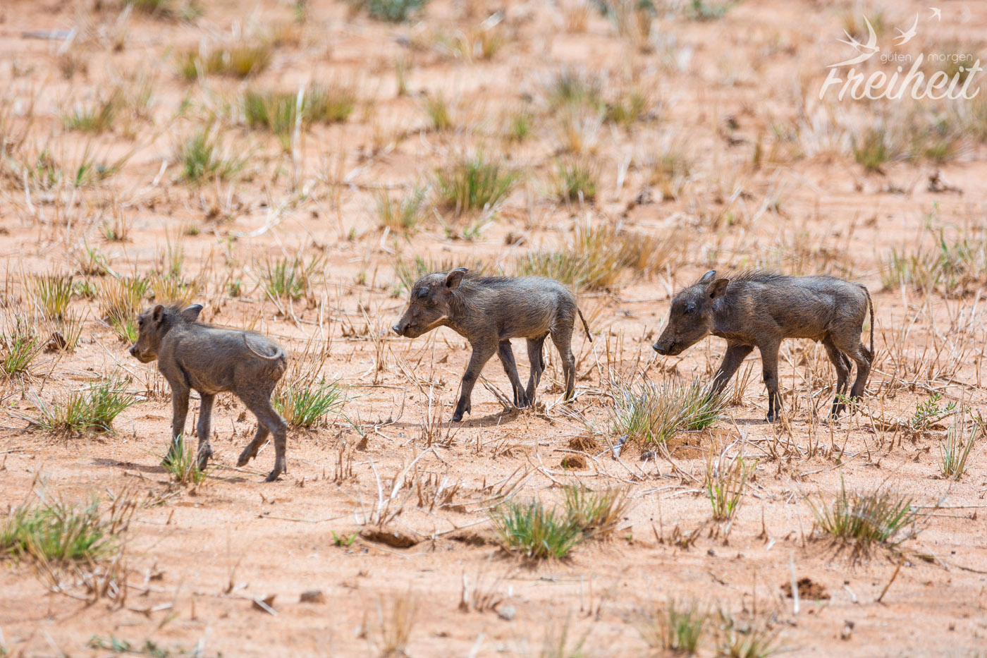Frisch gestärkt geht es auf der Landstraße weiter und ehe wir uns versehen stehen Warzenschweine am Straßenrand und grasen. Wie cool! Wir hatten so gehofft nochmal welchen zu begegnen und nun stehen sie einfach da. Nur ist das Anhalten auf dieser schmalen Landstraße ohne Seitenstreifen nicht so ungefährlich, schliesslich darf hier bis zu 120Km/h gefahren werden, und so versuchen wir es mit langsam vorbei fahren. Toll, sie laufen sofort weg! Wir finden eine kleine Haltebucht ca. 50 Meter von den Tieren entfernt, aber auch jetzt laufen sie sofort weg. Das ist doch nicht zu fassen, du kannst mit über 100 Sachen einen Meter entfernt an ihnen vorbei brettern und sie zucken nicht mal mit der Wimper, aber wehe du wirst langsamer. Wir halten noch mehr Abstand ein, nehmen das 600er Teleobjektiv und versuchen uns immerhin teilweise erfolgreich anzuschleichen. Wir finden sie sehen einfach echt putzig aus 🙂