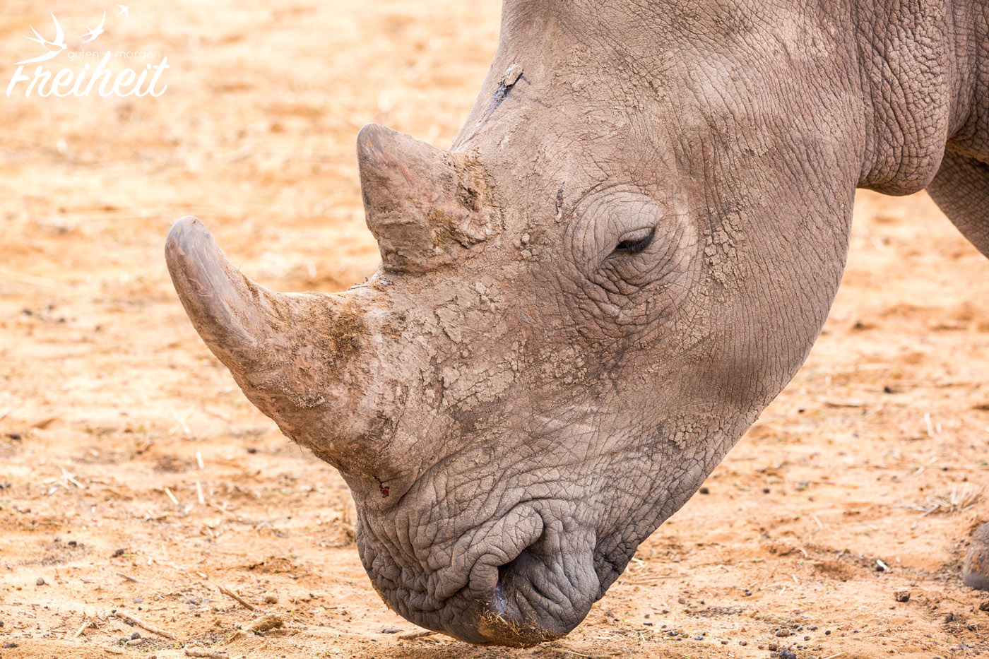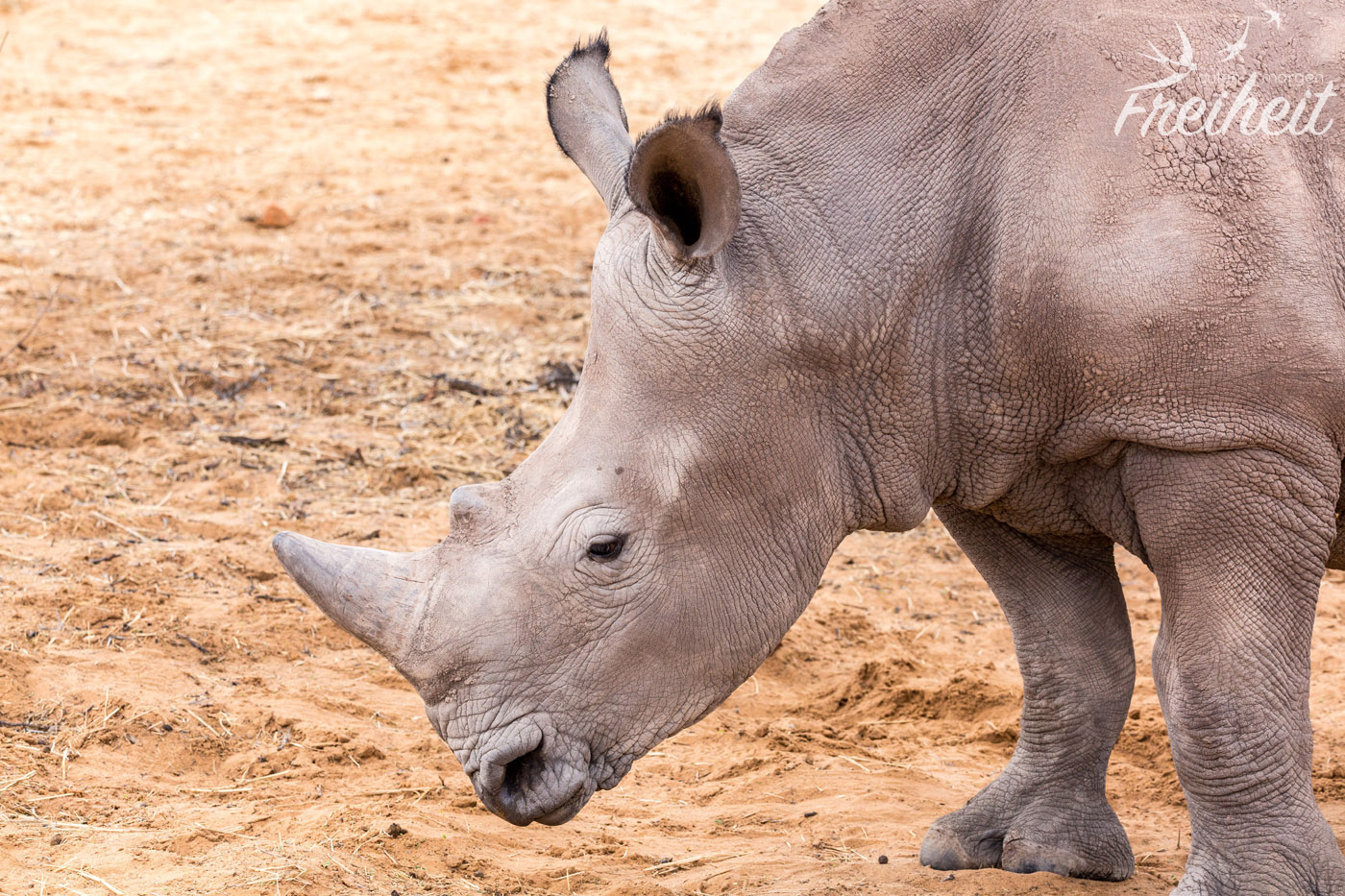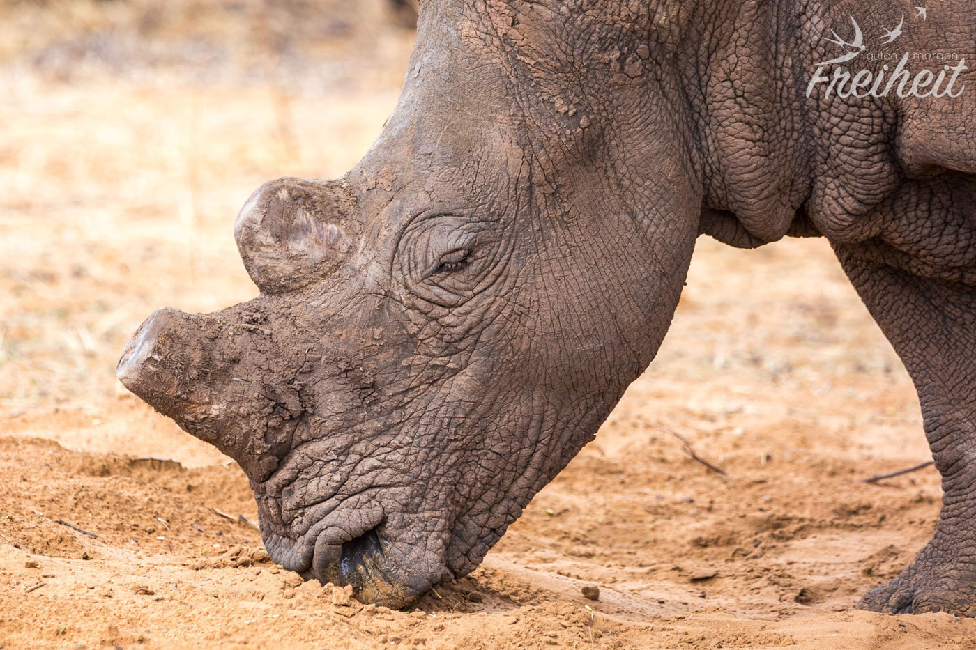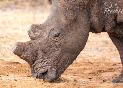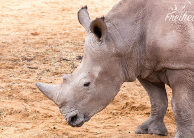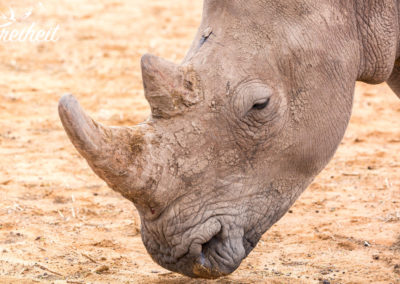 Das Breitmaulnashorn ist die größte heute lebende Nashornart und neben dem Elefanten und dem Flusspferd eines der größten Landsäugetiere, das bis zu 3,80m Länge und bis 1,80 Höhe erreichen kann. Bei einem Gewicht von 1,8 bis 2t bei Kühen und bis zu 3,5t bei Bullen ist eine Sprintgeschwindigkeit von 40 km/h recht furchteinflößend, vor allem, weil sie sehr gut riechen können und nur schlecht sehen. Ihre Strategie ist dementsprechend „Angriff ist die beste Verteidigung“ 😉 Schön zu erleben, das diese Riesen normalerweise wenig angriffslustig sind und diese hier im Besonderen Menschen gewöhnt sind und sich deshalb nicht bedroht fühlen.